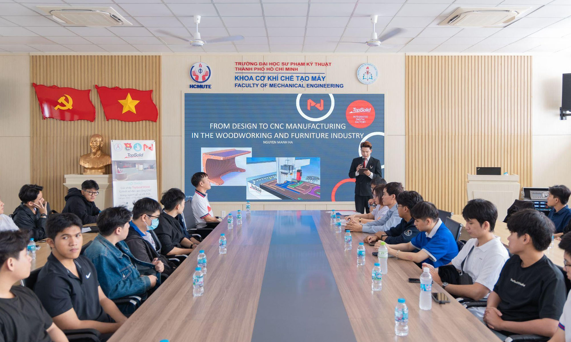 Sáng ngày 17/04/2026, tại phòng E0-204, Khoa Cơ khí Chế tạo máy – Trường Đại học Công nghệ Kỹ thuật TP.HCM (HCM-UTE), tiền thân là Trường Đại học Sư phạm Kỹ thuật TP.HCM đã phối hợp cùng công ty TopSolid và công ty TNHH Giải pháp Kỹ thuật Hà An tổ chức hội thảo chuyên đề “Từ thiết kế đến gia công CNC trong ngành gỗ và nội thất với giải pháp TopSolid’Wood”.