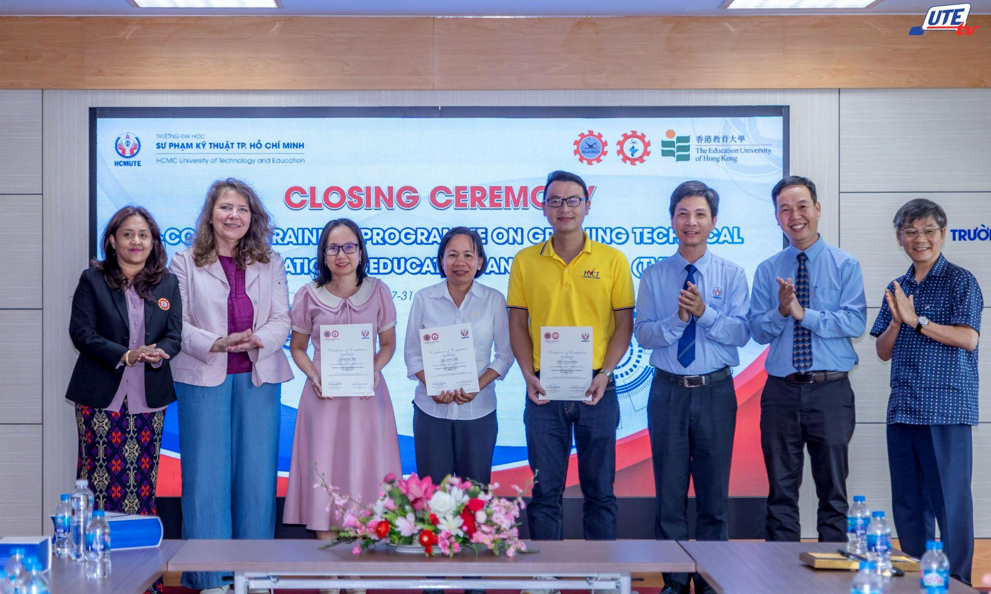 Trong khuôn khổ hợp tác tăng cường năng lực giáo dục nghề nghiệp theo định hướng xanh và phát triển bền vững, từ ngày 27 đến 31/10/2025, Trường Đại học Sư phạm Kỹ thuật TP. Hồ Chí Minh (HCMUTE) phối hợp với SEAMEO VOCTECH (Brunei) và Trường Đại học Giáo dục Hồng Kông tổ chức khóa tập huấn “Greening Technical and Vocational Education and Training (TVET)” tại phòng Dạy học số F1-608.