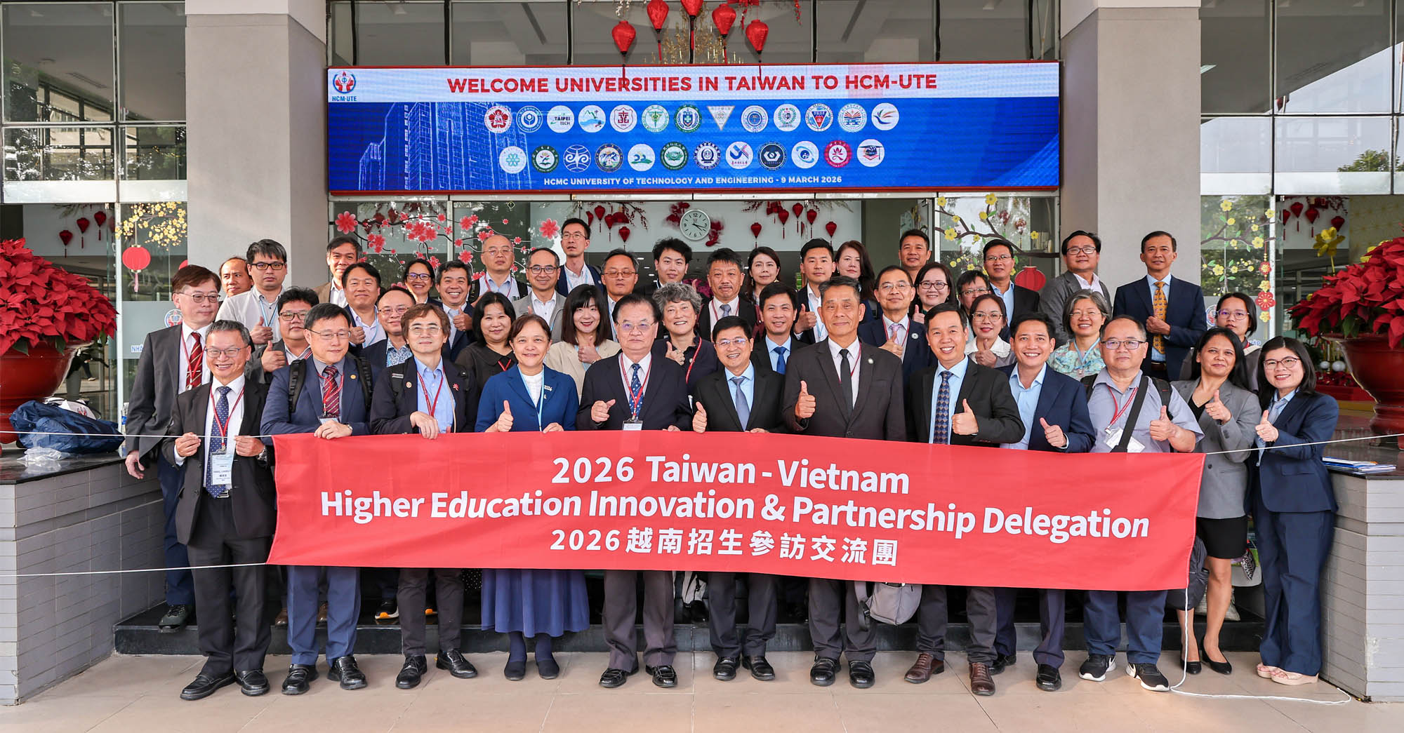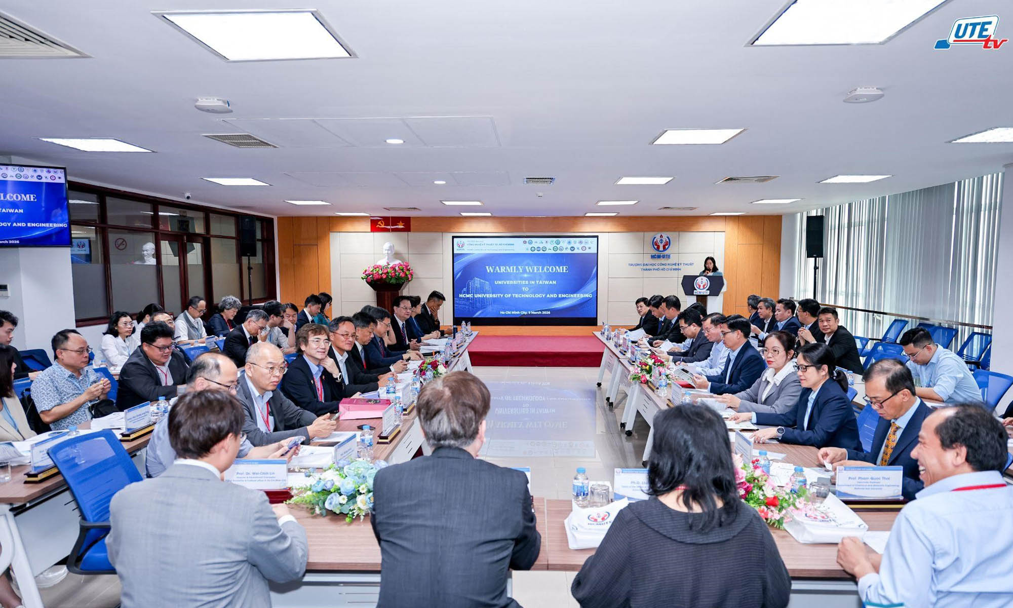Với mục tiêu thúc đẩy hợp tác quốc tế trong đào tạo và nghiên cứu các lĩnh vực công nghệ cao, đặc biệt là công nghệ bán dẫn, AI và năng lượng tái tạo, chiều ngày 09/3/2026, đoàn đại diện 25 trường đại học và tổ chức giáo dục đến từ Đài Loan đã có chuyến thăm và làm việc tại Trường Đại học Công nghệ Kỹ thuật TP.HCM (HCM-UTE), tiền thân là Trường Đại học Sư phạm Kỹ thuật TP.HCM.