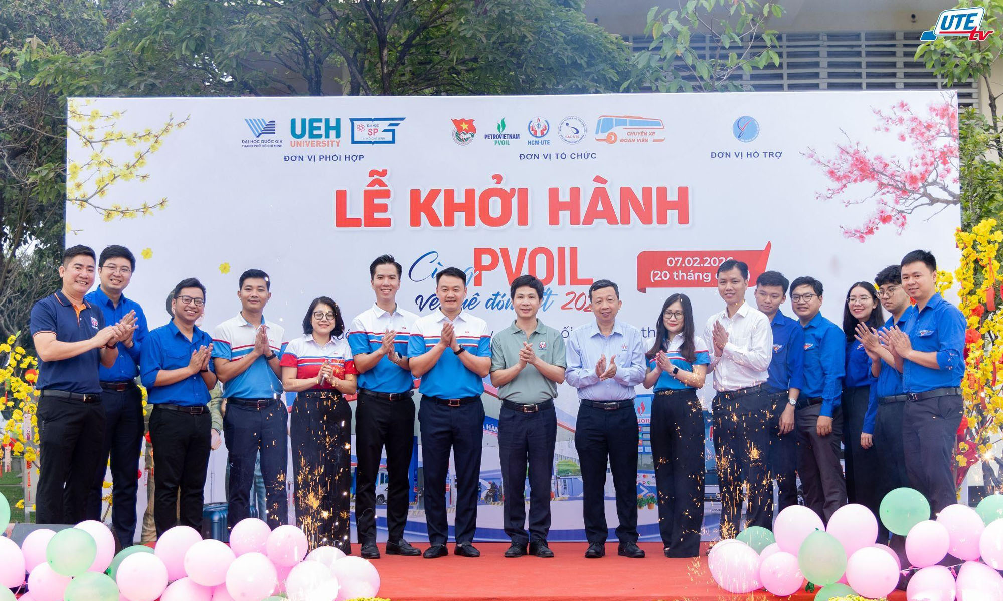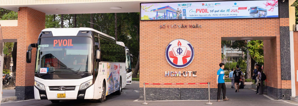 Sáng ngày 07/02/2026 (nhằm ngày 20 tháng Chạp năm Ất Tỵ), tại Trường Đại học Công nghệ Kỹ thuật TP. Hồ Chí Minh (HCM-UTE), tiền thân là Trường Đại học Sư phạm Kỹ thuật TP.HCM, chuyến xe đầu tiên của chương trình Chuyến xe đoàn viên – Cùng PVOIL về quê đón Tết Bính Ngọ 2026 đã chính thức khởi hành, đưa 1.100 sinh viên HCM-UTE và sinh viên các trường đại học, cao đẳng trên địa bàn TP.HCM về quê đón Tết Nguyên đán cùng gia đình.