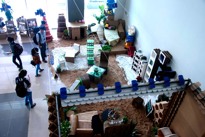 Booth under the theme: "Proposing process prototyping and manufacturing of furniture from cardboard sheets " at Centre Building.