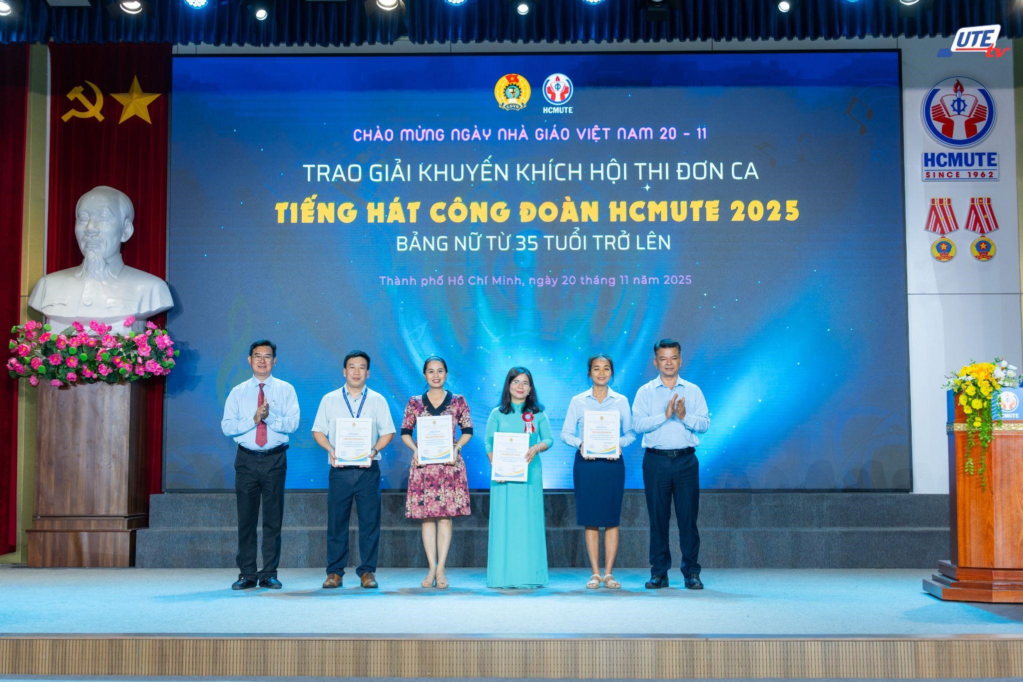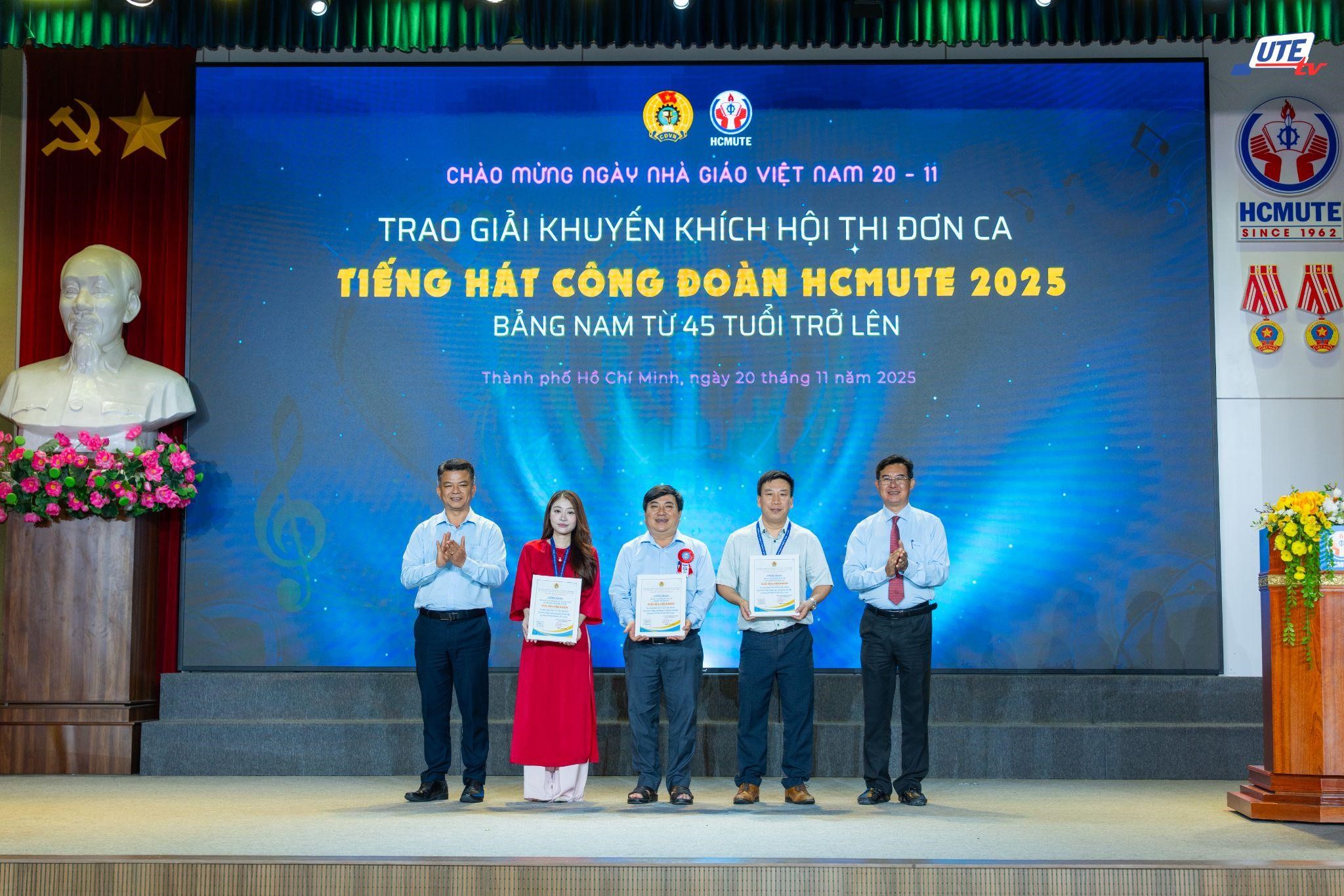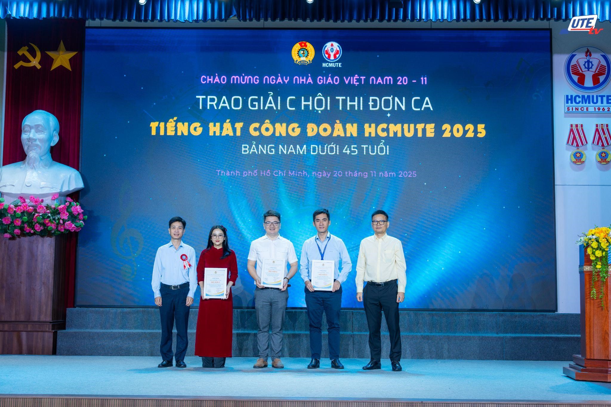 Sáng ngày 20/11/2025, Công đoàn Trường Đại học Sư phạm Kỹ thuật TP.HCM tổ chức lễ công bố và trao giải Hội thi Đơn ca Tiếng hát Công đoàn năm 2025, khép lại một mùa Hội thi sôi nổi và giàu cảm xúc.