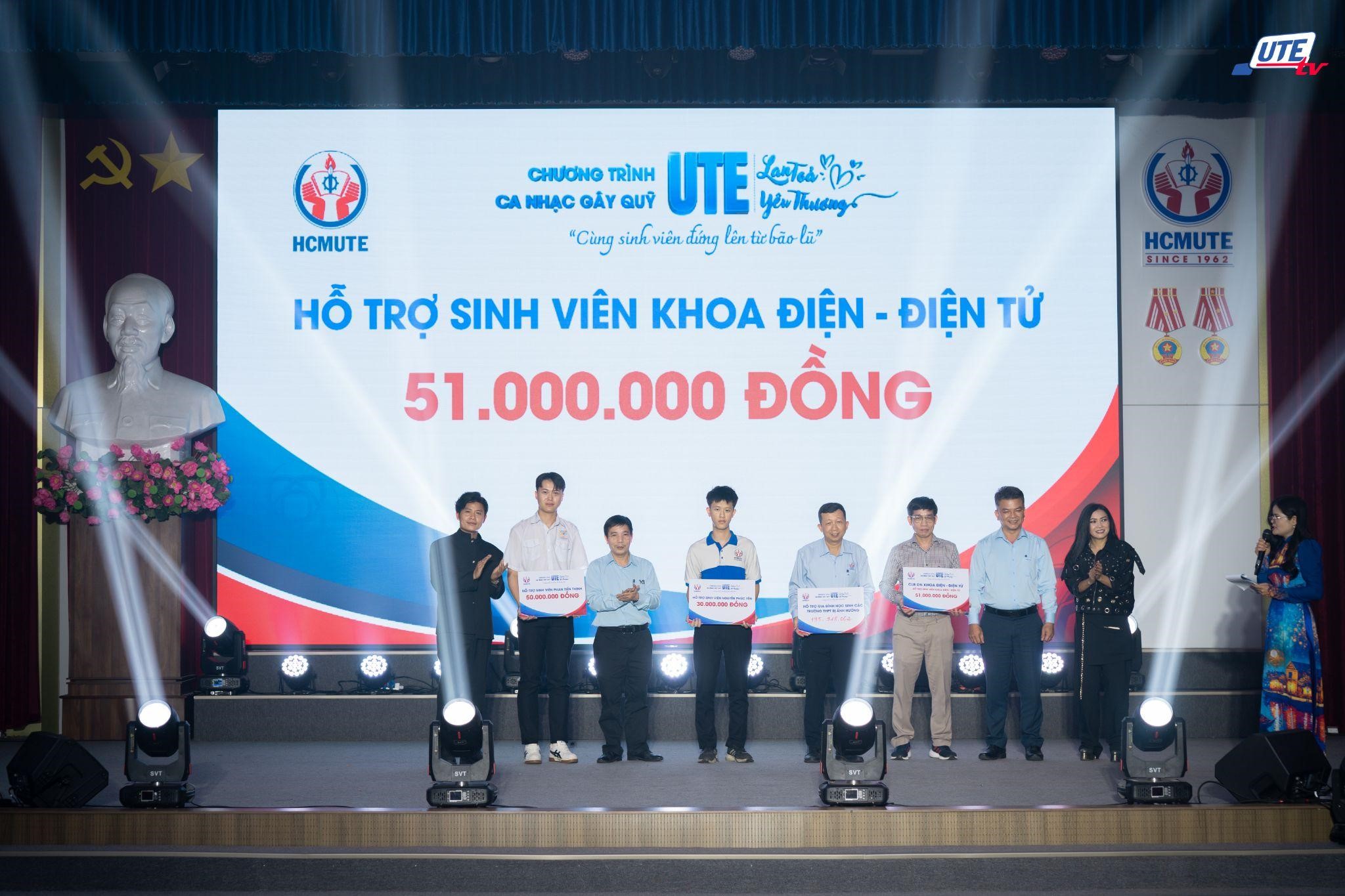 Kết thúc chương trình, Ban tổ chức công bố tổng số tiền ủng hộ 376.918.062 đồng. Từ nguồn hỗ trợ này, HCMUTE đã trao biểu trưng hỗ trợ khẩn cấp đến các cá nhân, tập thể và đơn vị chịu ảnh hưởng nặng nề sau đợt bão lũ, cụ thể:
