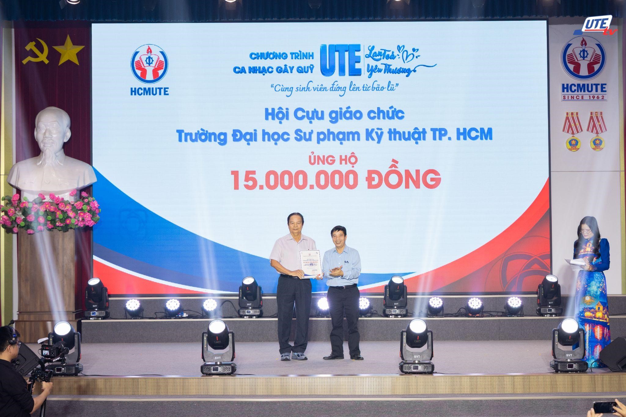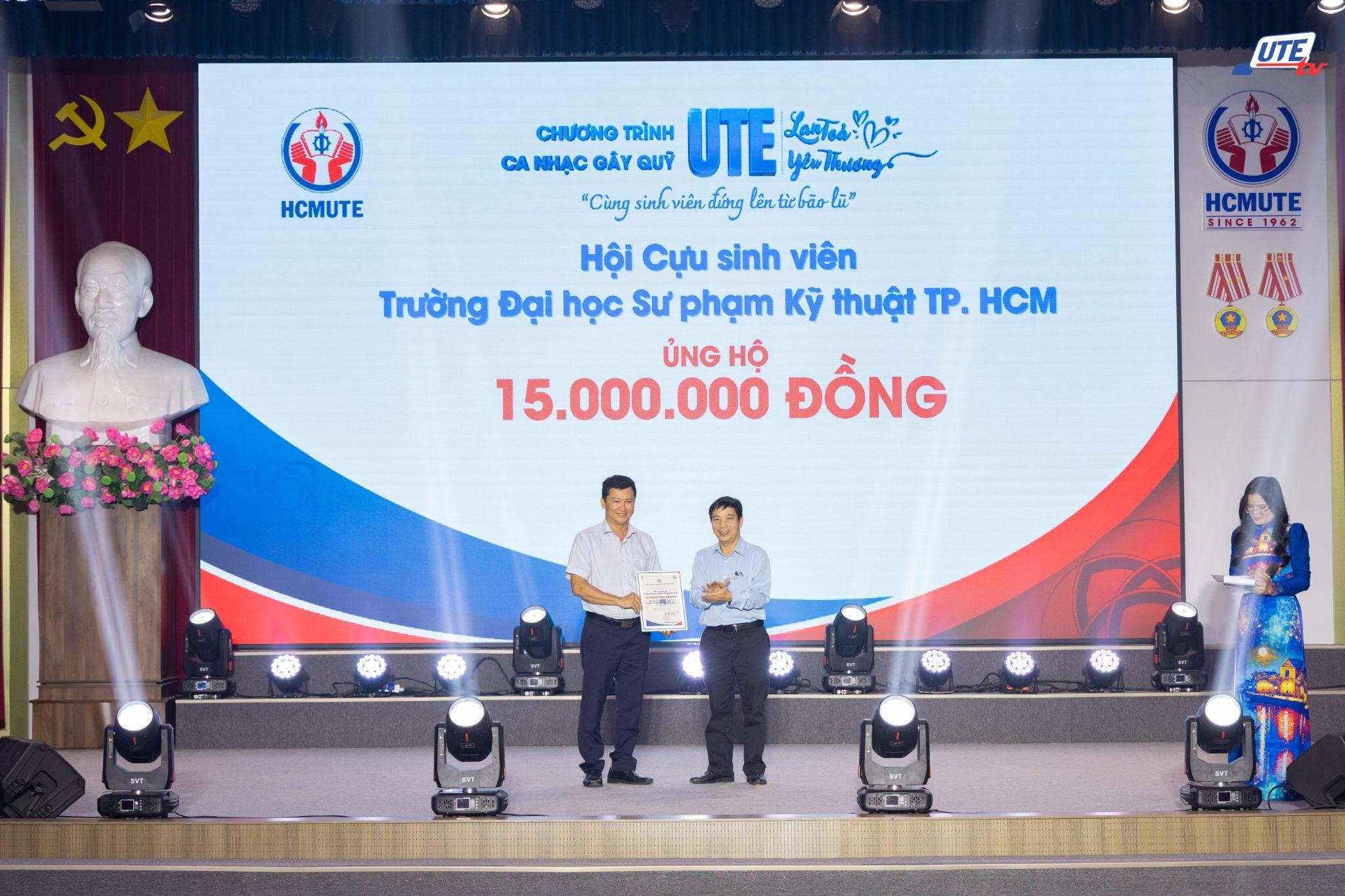 ● Hội Cựu sinh viên Trường Đại học Sư phạm Kỹ thuật TP.HCM ủng hộ 15.000.000 đồng;