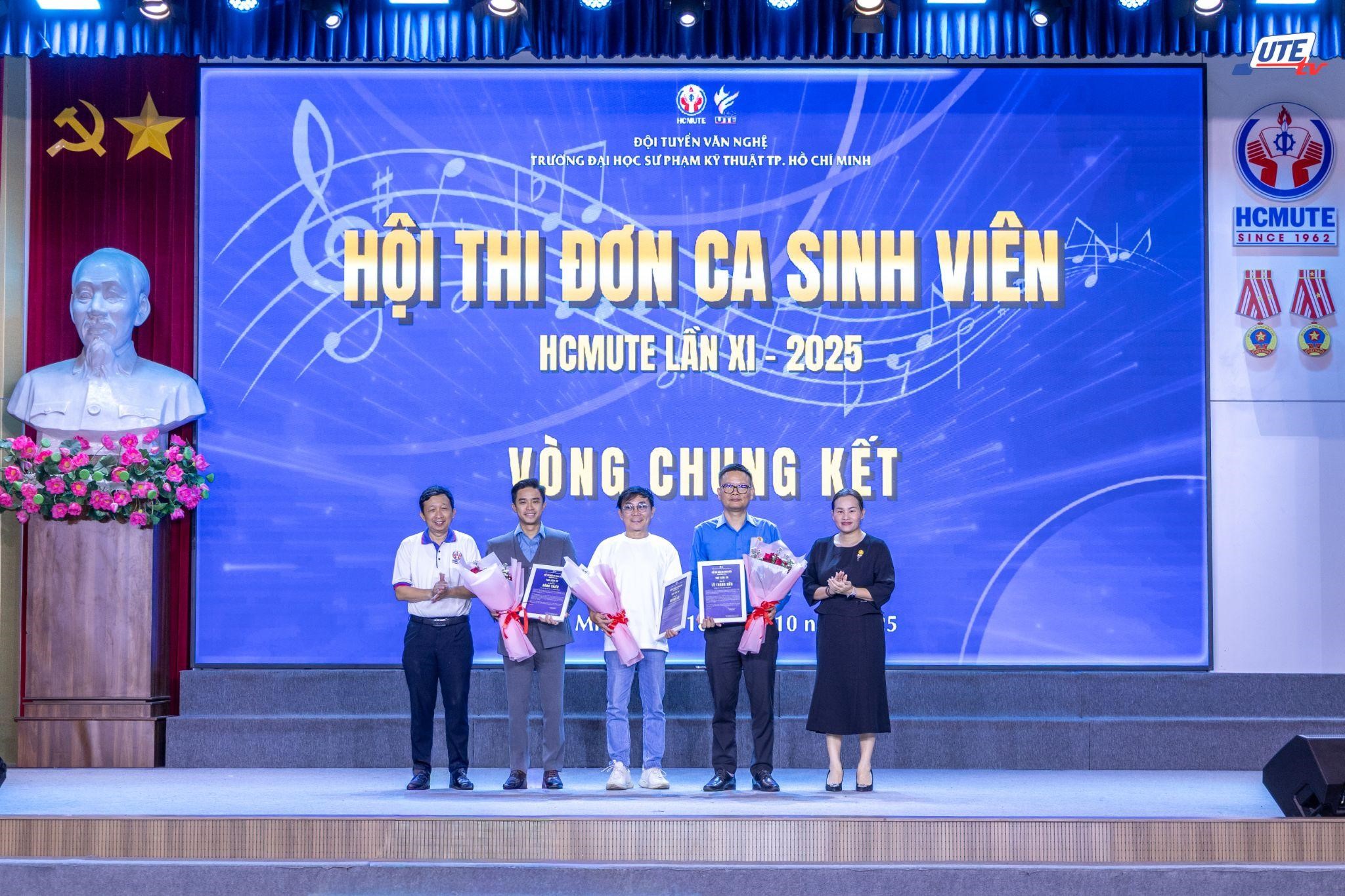 Ban tổ chức trao giải Nhất, giải Nhì bảng Nam Hội thi Đơn ca sinh viên HCMUTE năm 2025