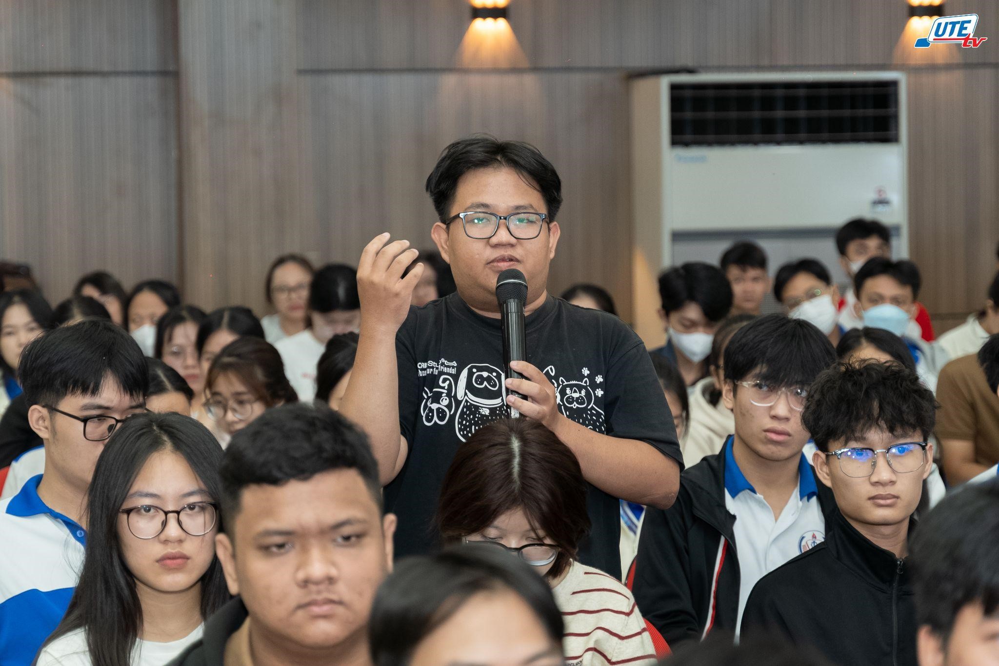 Sinh viên đặt đặt câu hỏi, trao đổi tại chương trình