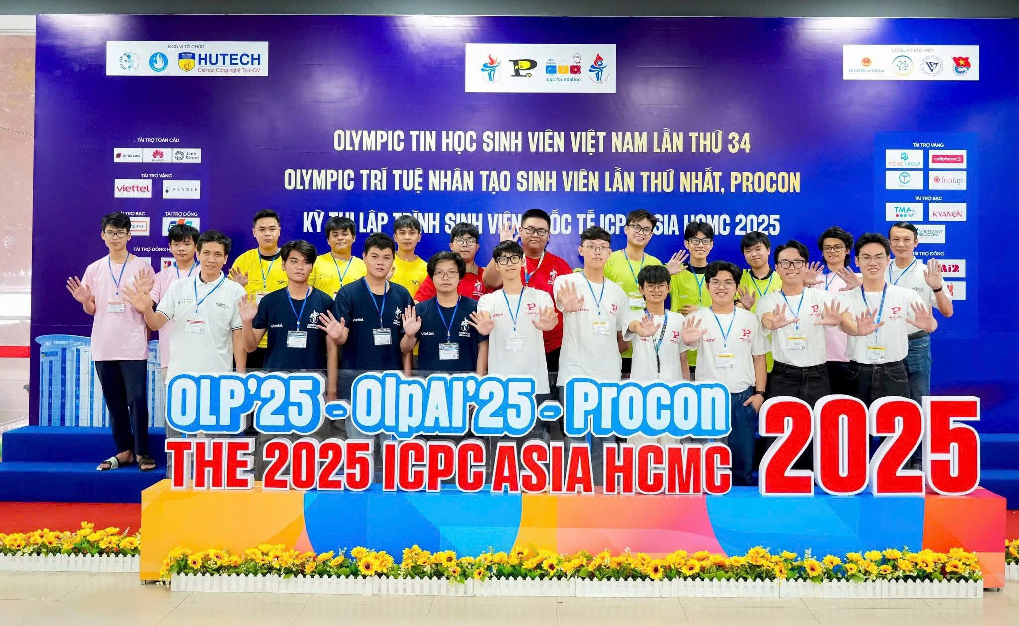 Sau nhiều ngày tranh tài đầy quyết liệt, chuỗi kỳ thi Olympic Tin học Sinh viên Việt Nam lần thứ 34 (OLP’25), Olympic Trí tuệ nhân tạo Sinh viên Việt Nam lần thứ nhất (OlpAI’25), Procon Việt Nam & Kỳ thi Lập trình Sinh viên Quốc tế ICPC Asia HoChiMinh City 2025 đã khép lại vào chiều tối ngày 12/12/2025. Theo đó, đội tuyển của Trường Đại học Sư phạm Kỹ thuật TP.HCM (HCMUTE) đã mang về 01 Huy chương Vàng, 03 giải Ba và 04 giải Khuyến khích.
