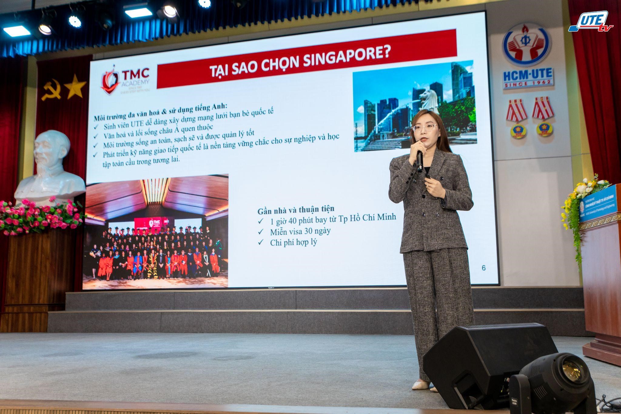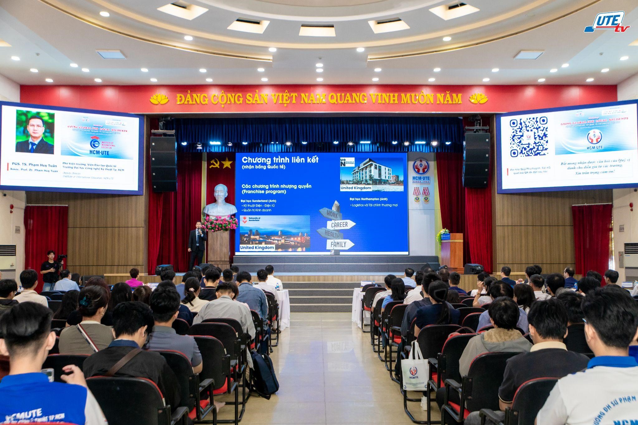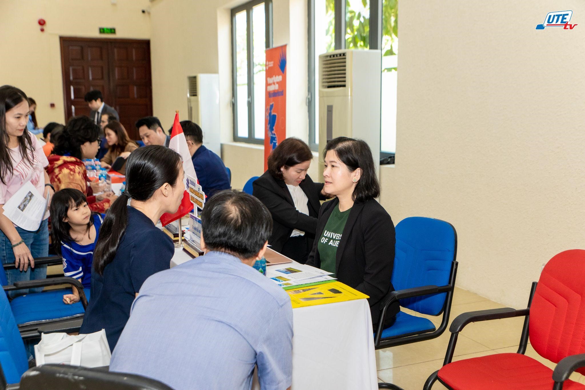 Hội thảo là dịp để sinh viên HCM-UTE tiếp cận trực tiếp với đại diện các trường đại học uy tín đến từ Anh, Úc, Singapore, Hàn Quốc, Canada, Hoa Kỳ và Đức, đồng thời được tư vấn chi tiết về lộ trình học tập, điều kiện tuyển sinh và chuyển tiếp, học bổng cũng như kinh nghiệm chuẩn bị hồ sơ du học.
