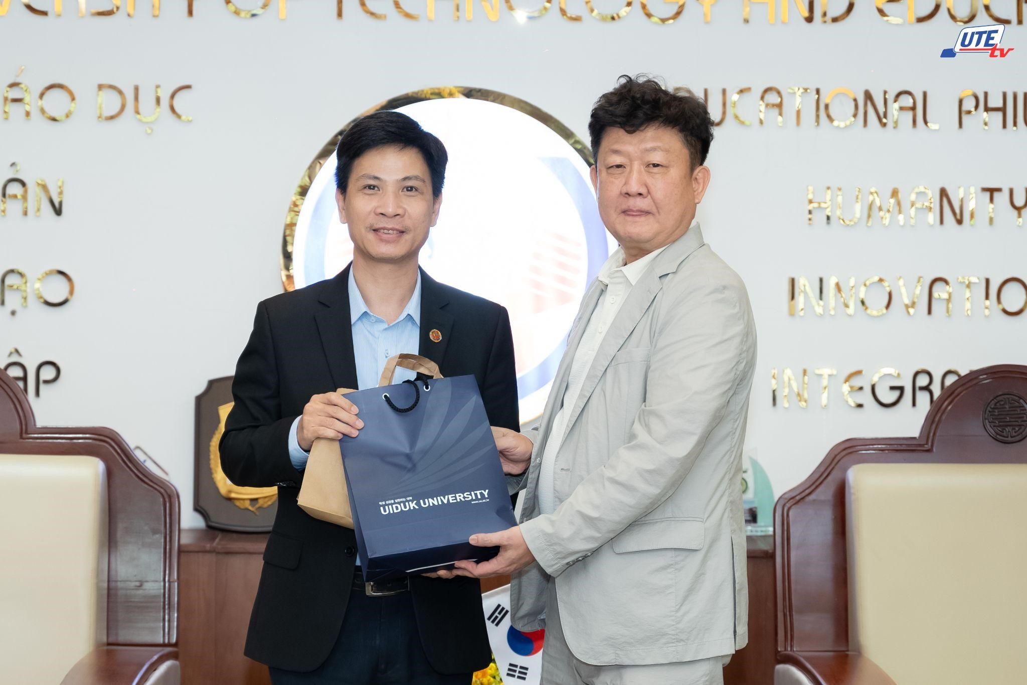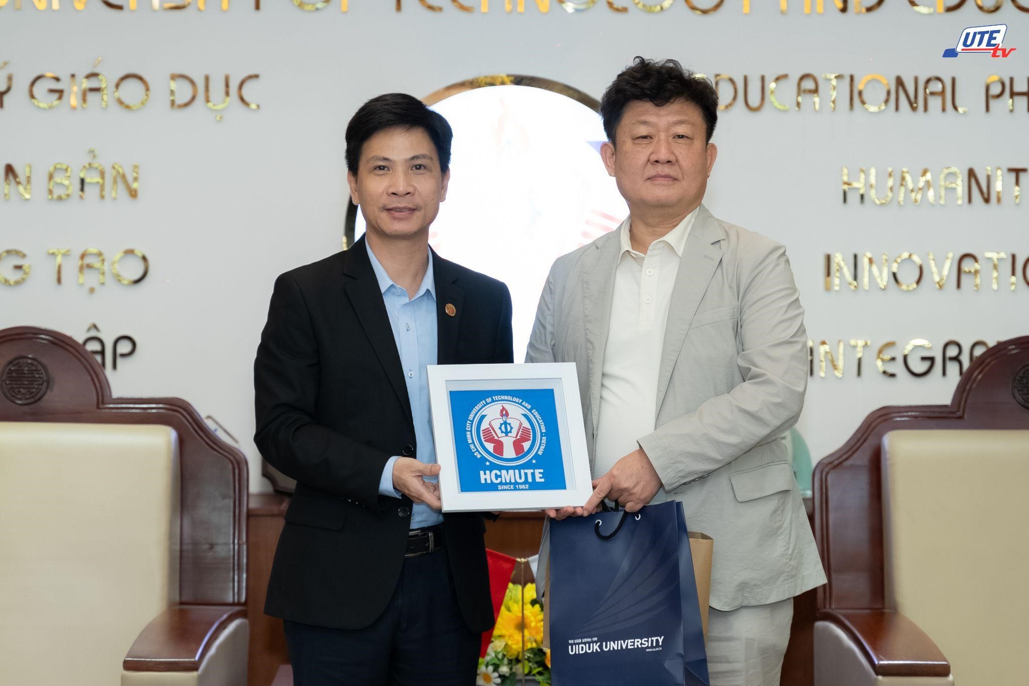 Tại buổi làm việc, đại diện HCMUTE khẳng định nhà trường luôn nỗ lực xây dựng các quan hệ hợp tác chiến lược với các trường đại học uy tín tại Hàn Quốc nhằm nâng cao chất lượng đào tạo, nghiên cứu và mở rộng cơ hội quốc tế cho sinh viên. PGS.TS. Châu Đình Thành nhấn mạnh sự tương đồng về định hướng phát triển giữa HCMUTE và UIDUK sẽ tạo nền tảng thuận lợi để triển khai các chương trình hợp tác thực chất trong thời gian tới. Đáp lại, TS. Lee Sung-hwan đánh giá cao năng lực đào tạo của HCMUTE, đặc biệt là tinh thần đổi mới của sinh viên, đồng thời bày tỏ mong muốn tăng cường hợp tác trong đào tạo ứng dụng, nghiên cứu và phát triển nguồn nhân lực chất lượng cao.