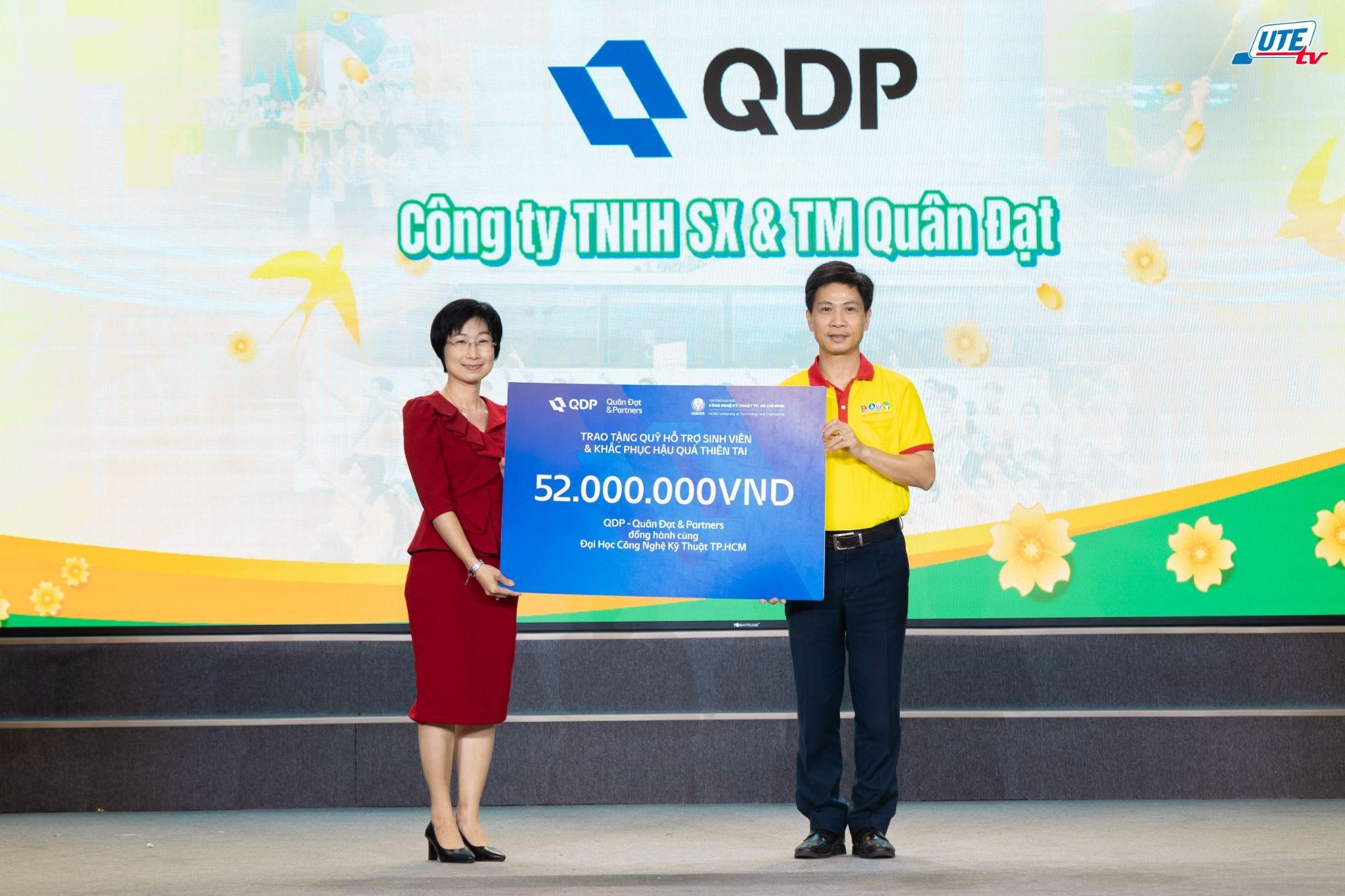 Đại diện công ty Quân Đạt & Partners trao học bổng hỗ trợ cho sinh viên HCM-UTE