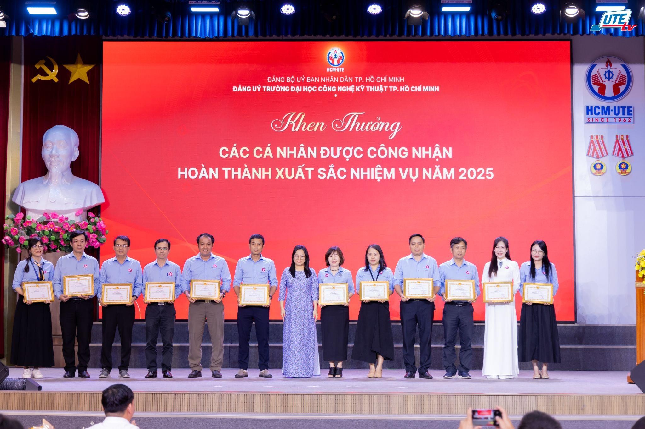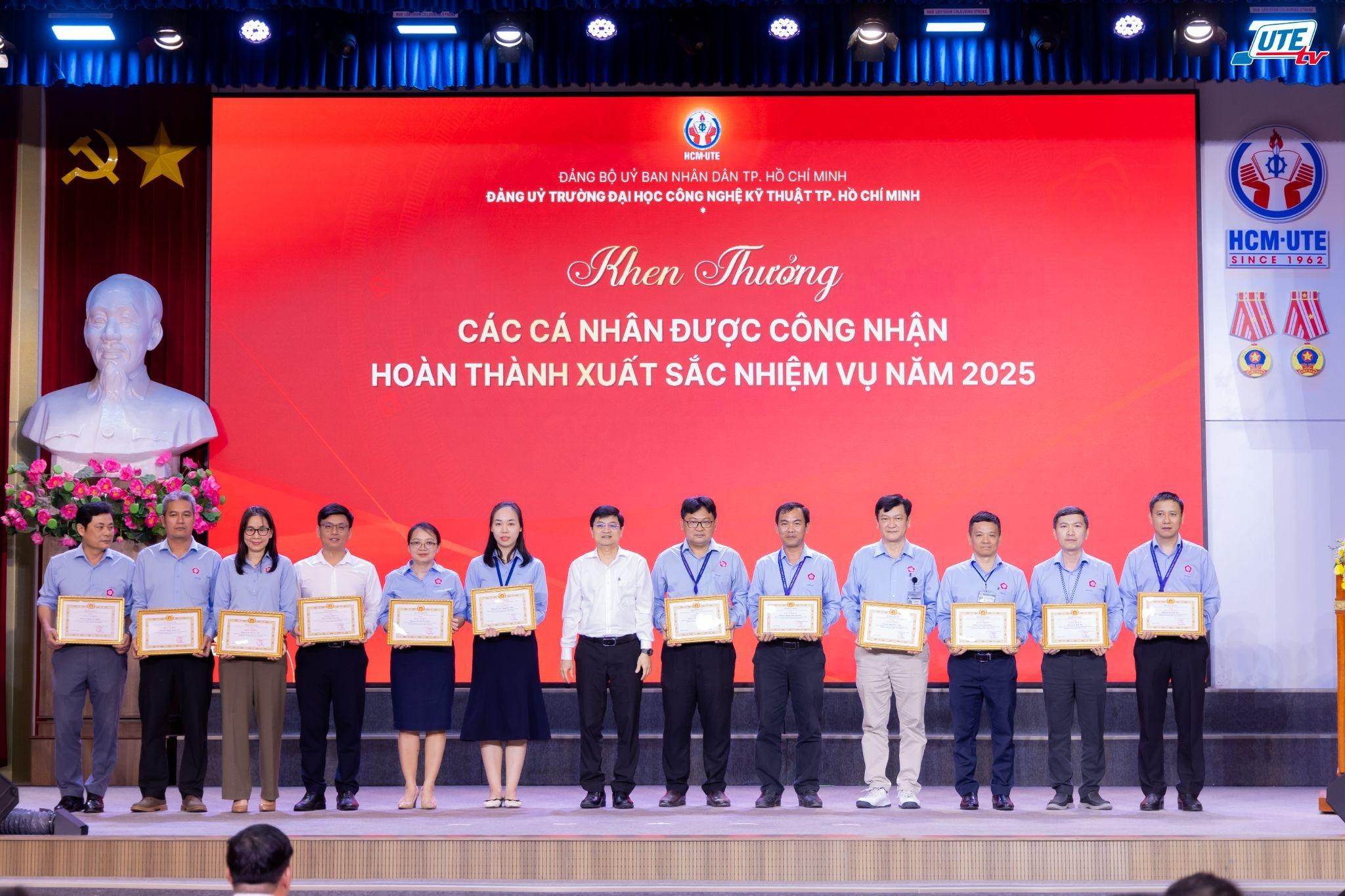 Đảng ủy HCM-UTE trao tặng giấy khen cho các cá nhân được công nhận hoàn thành xuất sắc nhiệm vụ năm 2025