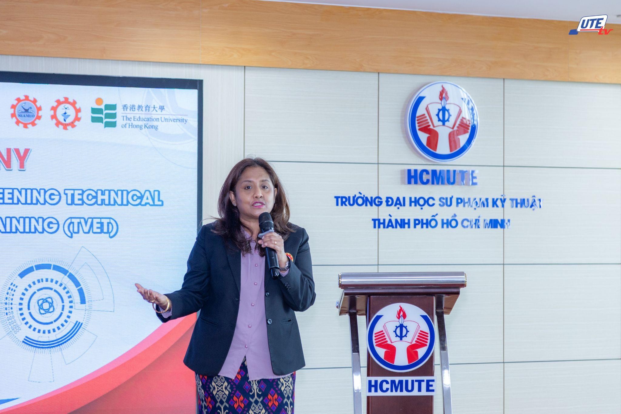 Là giảng viên chính của khóa đào tạo, PGS.TS. Margharita Pavlova và TS. Jaya Priah Kasinathan gửi lời chúc mừng đến toàn thể học viên đã hoàn thành chương trình. Hai chuyên gia đánh giá cao tinh thần học tập nghiêm túc, sự chủ động trao đổi và cam kết theo đuổi các giá trị phát triển bền vững của học viên trong suốt khóa tập huấn. Đồng thời, các giảng viên ghi nhận sự phối hợp hiệu quả giữa HCMUTE và SEAMEO VOCTECH trong công tác tổ chức, góp phần tạo nên một chương trình đào tạo chất lượng, thiết thực và giàu ý nghĩa đối với cộng đồng giáo dục nghề nghiệp.