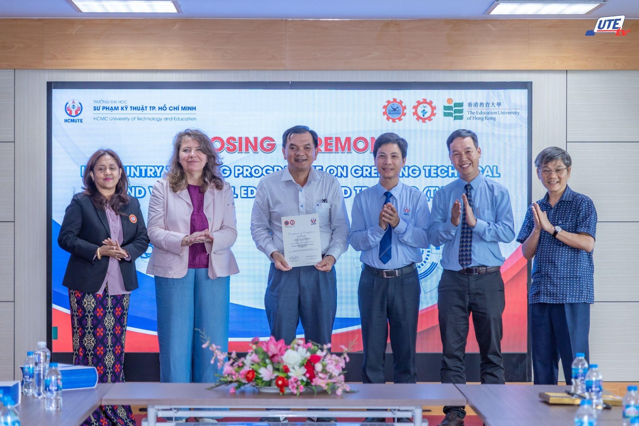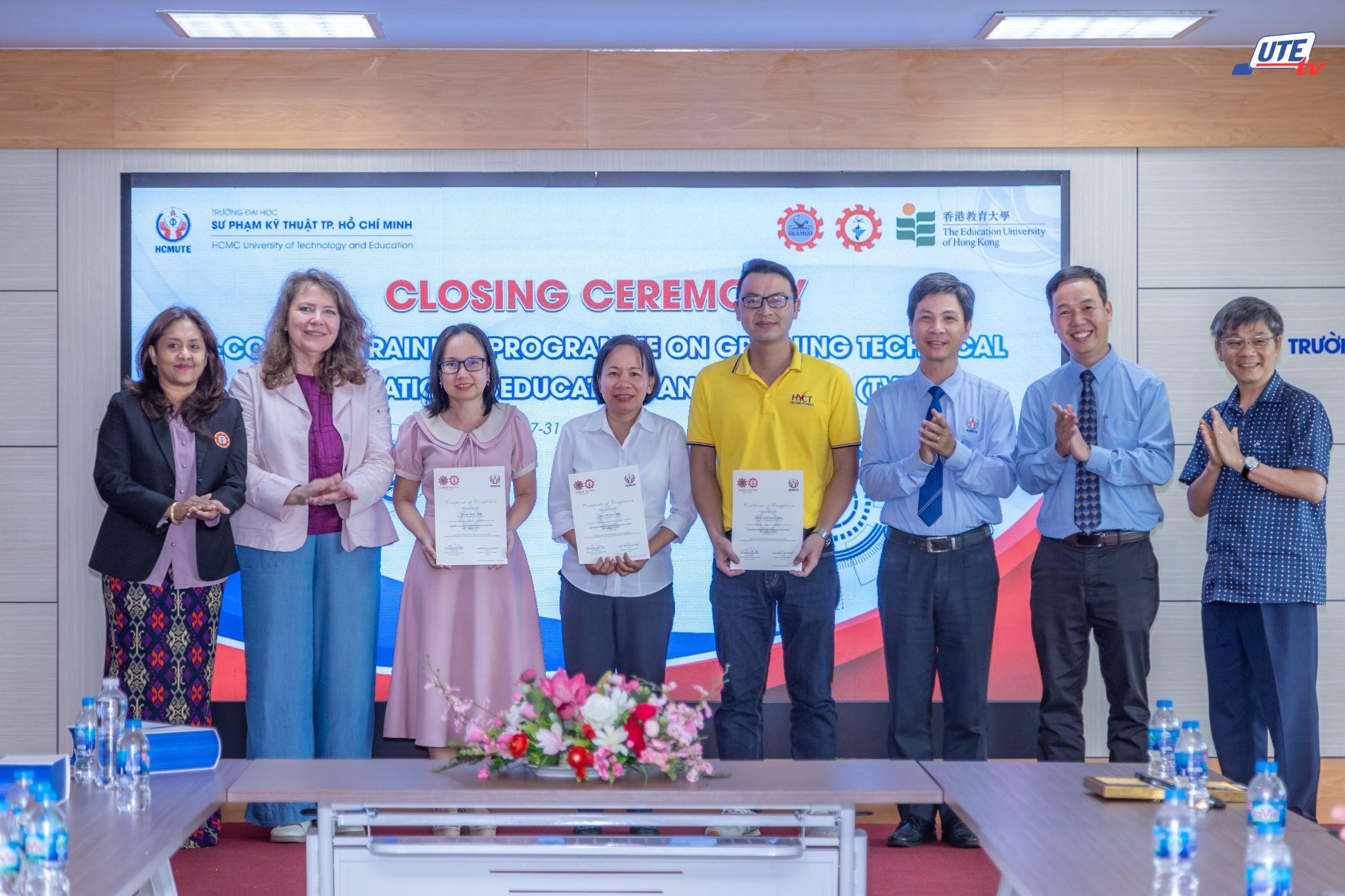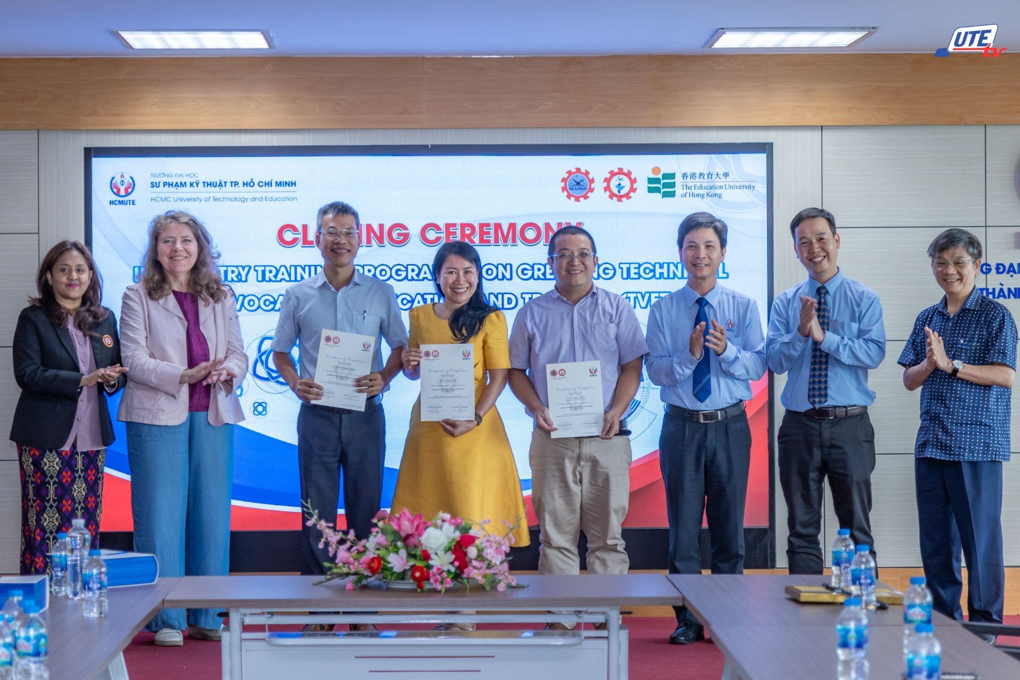 Đại diện HCMUTE và SEAMEO VOCTECH trao chứng chỉ cho học viên tham gia khóa học