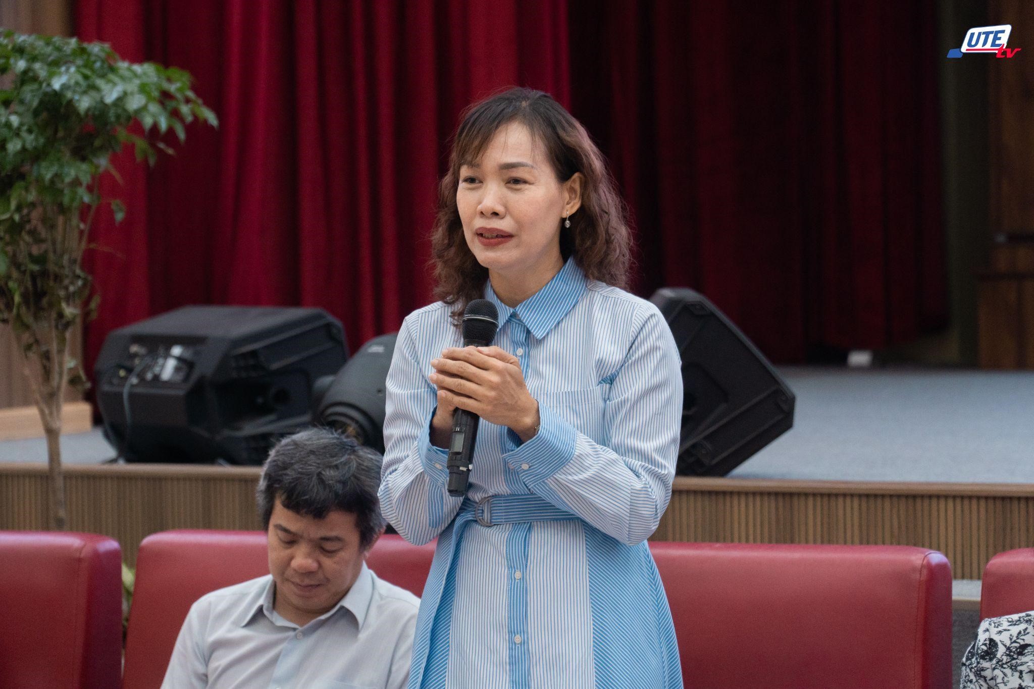 Trước những vấn đề được sinh viên nêu ra, đại diện các đơn vị của Nhà trường đã trực tiếp đưa ra giải pháp và lộ trình xử lý. ThS. Phạm Thị Thu Sương – Phó trưởng phòng Đào tạo giải thích các nội dung liên quan đến chương trình học, quy định đào tạo và dự kiến tổ chức hội thảo đánh giá hiệu quả mô hình giảng dạy. Thầy Nguyễn Hà – Phó Giám đốc Trung tâm Thông tin – Máy tính trình bày nguyên nhân nghẽn mạng khi sử dụng tại trường và các biện pháp kỹ thuật đang triển khai để cải thiện tốc độ truy cập, trang bị thêm 245 máy tính mới, đồng thời khắc phục các thiết bị hỏng. ThS. Trần Thị Thanh Thủy – Phó trưởng phòng Quản trị cơ sở vật chất chia sẻ kế hoạch nâng cấp phòng học, sửa chữa các hạng mục xuống cấp và xem xét cải tiến thang máy, khu giữ xe. TS. Lê Trường Diễm Trang – Phó Trưởng phòng Kế hoạch Tài chính cung cấp thông tin về học bổng, chế độ hỗ trợ và định hướng phân bổ nguồn lực để đáp ứng nhu cầu của người học.