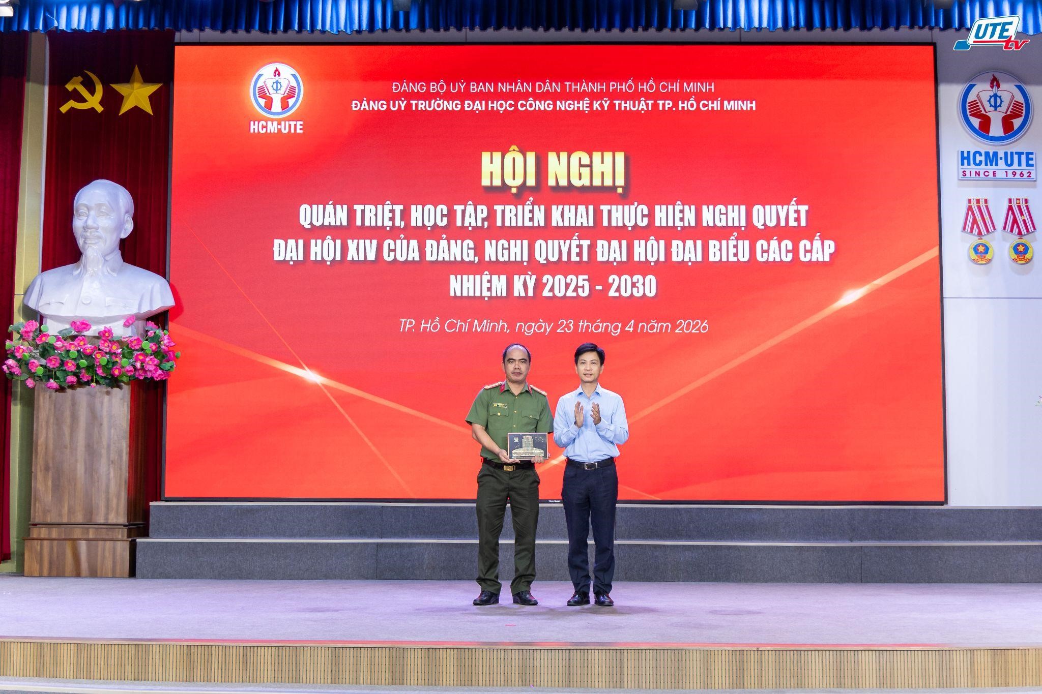 Sáng ngày 23/4/2026, tại Hội trường lớn khu A, Trường Đại học Công nghệ Kỹ thuật TP.HCM (HCM-UTE), tiền thân là Trường Đại học Sư phạm Kỹ thuật TP.HCM đã tổ chức chương trình kỷ niệm 51 năm Ngày Giải phóng miền Nam, thống nhất đất nước (30/4/1975 - 30/4/2026) kết hợp Hội nghị quán triệt, học tập, triển khai Nghị quyết Đại hội XIV của Đảng và Nghị quyết đại hội đại biểu các cấp nhiệm kỳ 2025-2030, đồng thời cập nhật tình hình thời sự chính trị quý I năm 2026.