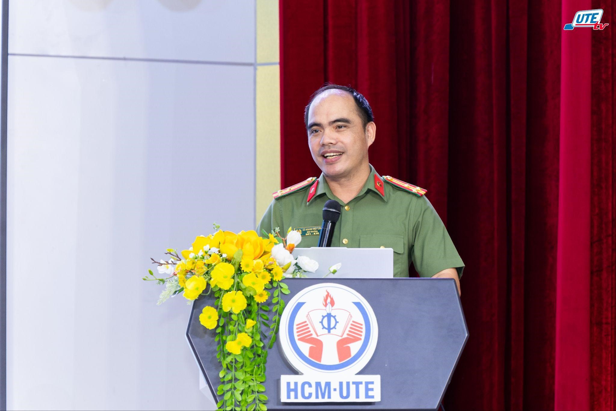 Thượng tá Tiến sĩ Lê Hoàng Việt Lâm – Giảng viên Khoa Lý luận chính trị và Khoa học xã hội nhân văn, Trường Đại học An ninh nhân dân trình bày báo cáo tại chương trình