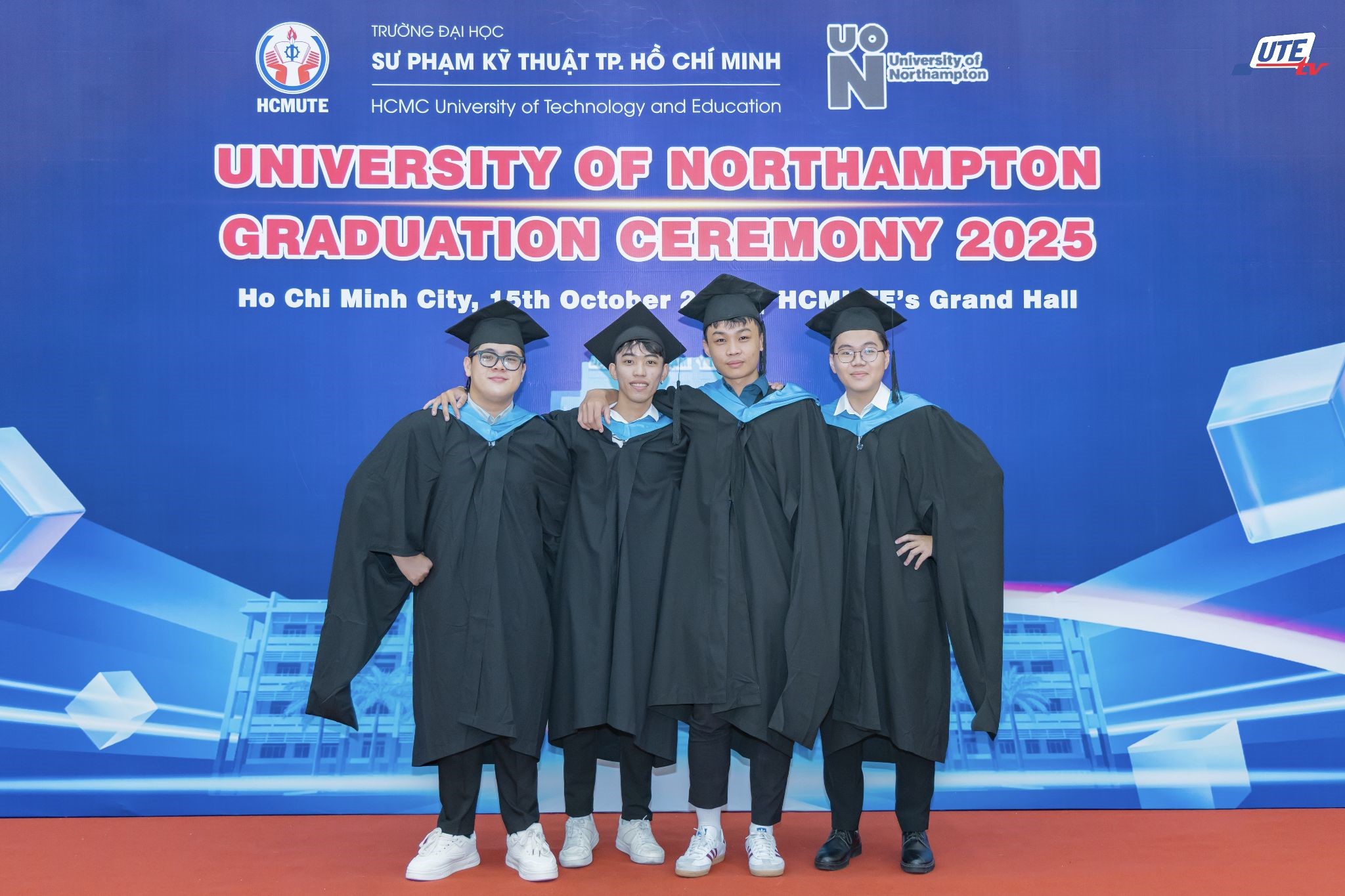 Sáng ngày 15/10/2025, Trường Đại học Sư phạm Kỹ thuật TP.HCM (HCMUTE) đã tổ chức chương trình Lễ tốt nghiệp và trao bằng Cử nhân cho 45 tân Cử nhân ngành Logistics và Tài chính Thương mại Quốc tế thuộc chương trình liên kết đào tạo quốc tế giữa HCMUTE và Đại học Northampton, Anh Quốc phối hợp cùng Học viện TMC, Singapore.