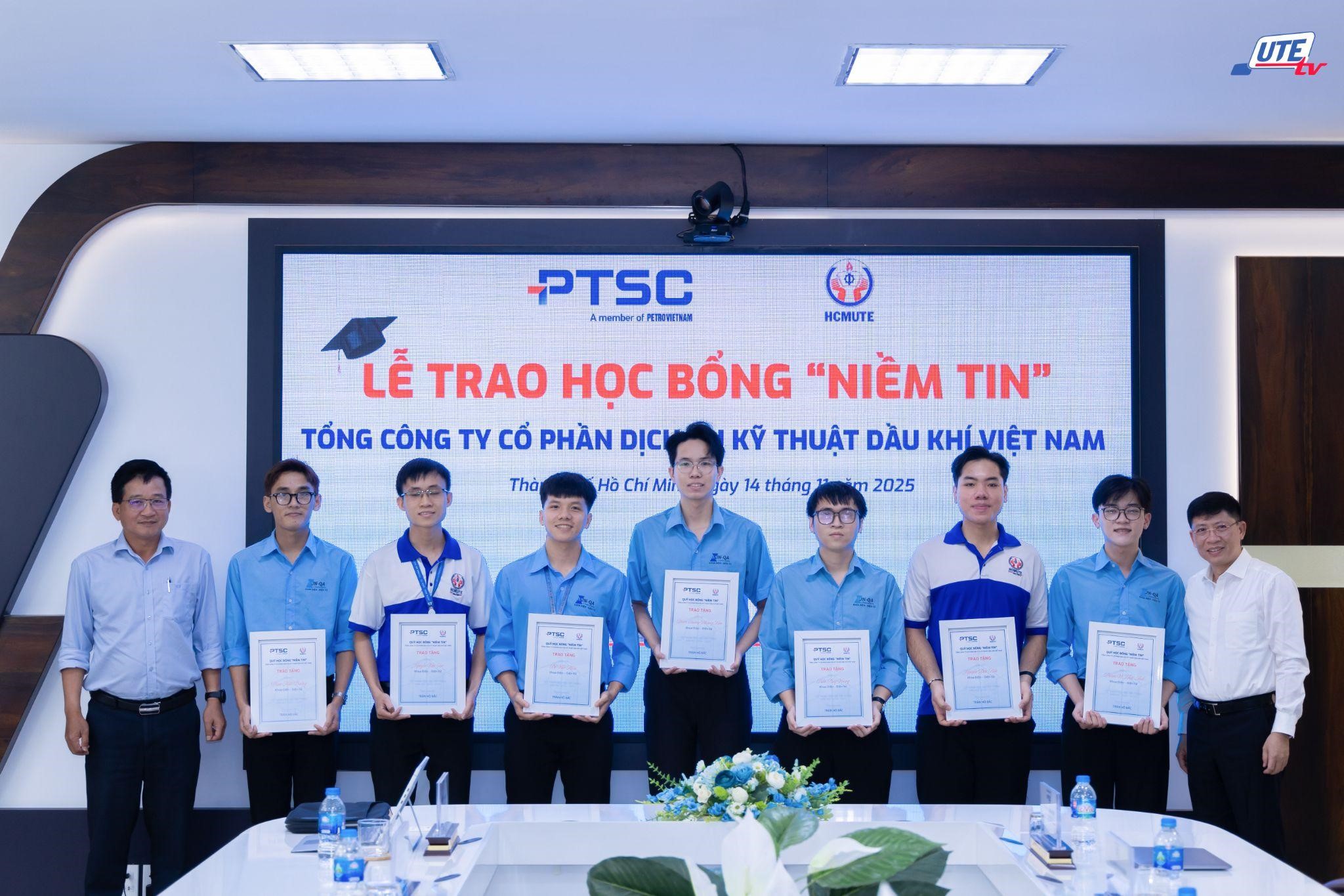 Ngày 14/11/2025, tại Phòng họp I – Trường Đại học Sư phạm Kỹ thuật TP.HCM (HCMUTE) đã diễn ra Lễ trao học bổng của Tổng công ty Cổ phần Dịch vụ Kỹ thuật Dầu khí Việt Nam (PTSC) năm 2025.