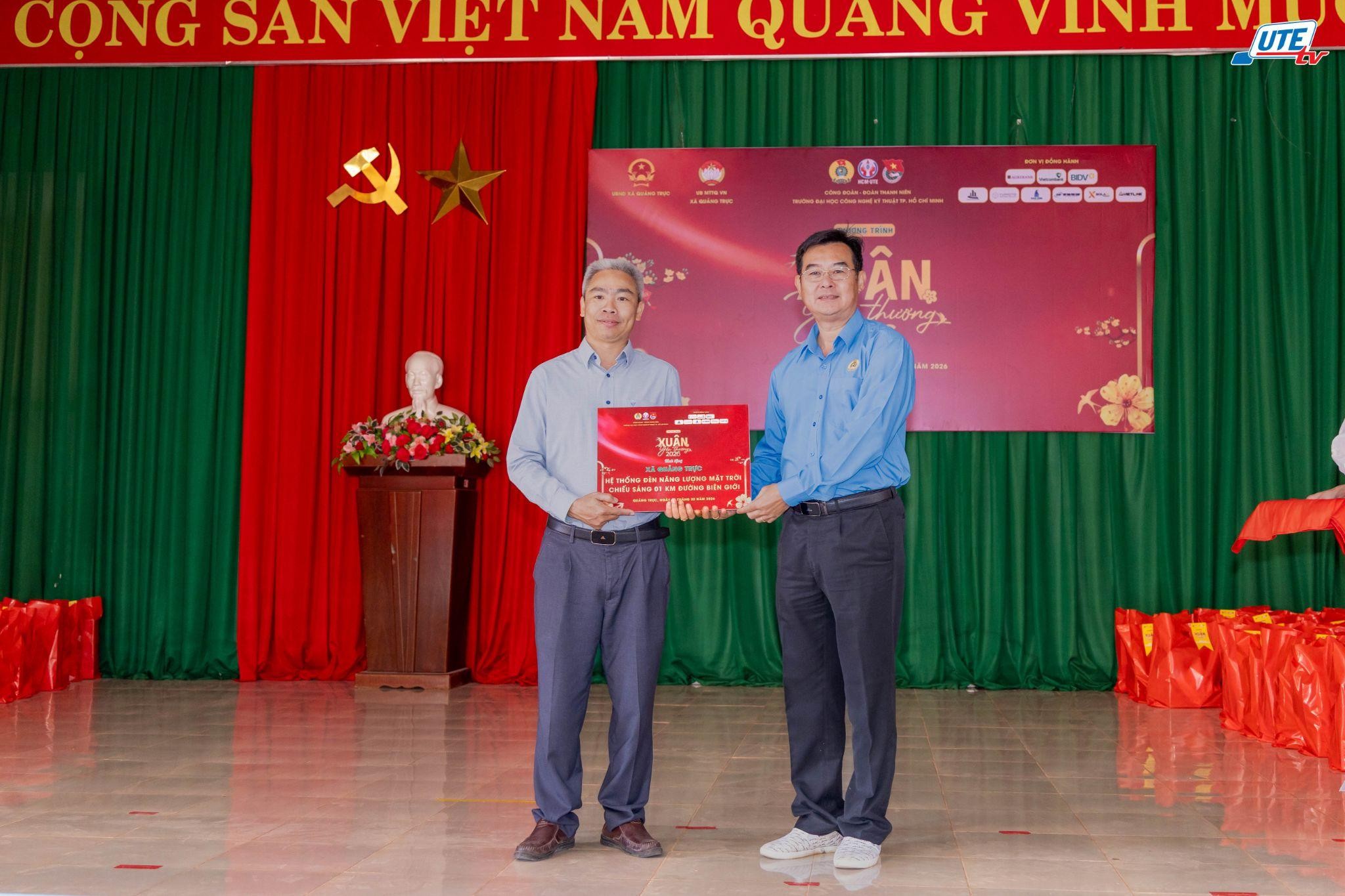 Phát biểu tại chương trình, đồng chí Nguyễn Nam Thắng – Chủ tịch Công đoàn trường, Trưởng Ban tổ chức cho biết, xuất phát từ tấm lòng và sự sẻ chia của tập thể viên chức, người lao động Trường Đại học Công nghệ Kỹ thuật TP.HCM đối với vùng biên cương của Tổ quốc, chương trình Xuân Yêu thương được tổ chức với mong muốn mang đến cho bà con và các em nhỏ nơi đây một chút hơi ấm của Thành phố Hồ Chí Minh trong những ngày xuân về. Đây cũng là lời chúc cho một năm mới an lành, vui tươi và là sự đồng hành, sẻ chia cùng địa phương trong hành trình phát triển cuộc sống ngày càng tốt đẹp hơn.