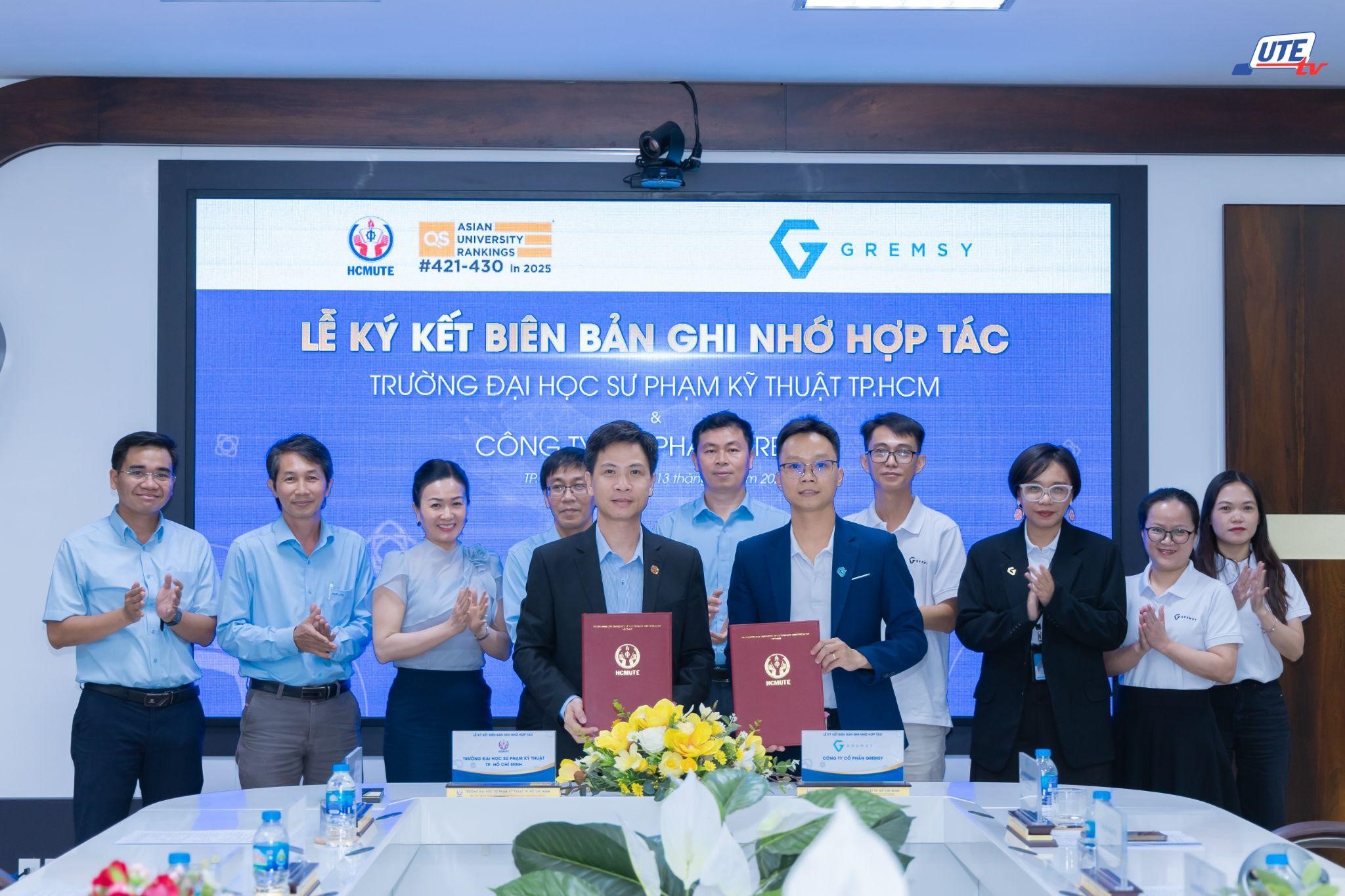 Chiều ngày 13/10/2025, tại Phòng họp 1 – Tòa nhà Trung tâm Trường Đại học Sư phạm Kỹ thuật TP.HCM (HCMUTE), đã diễn ra Lễ ký kết Biên bản ghi nhớ hợp tác (MoU) giữa HCMUTE và Công ty Cổ phần GREMSY (GREMSY). Sự kiện đánh dấu bước tiến mới trong chiến lược gắn kết giữa nhà trường và doanh nghiệp công nghệ, hướng đến mục tiêu chung là thúc đẩy phát triển công nghệ UAV/drone và đào tạo nguồn nhân lực kỹ thuật chất lượng cao đáp ứng nhu cầu của thời đại công nghiệp 4.0.