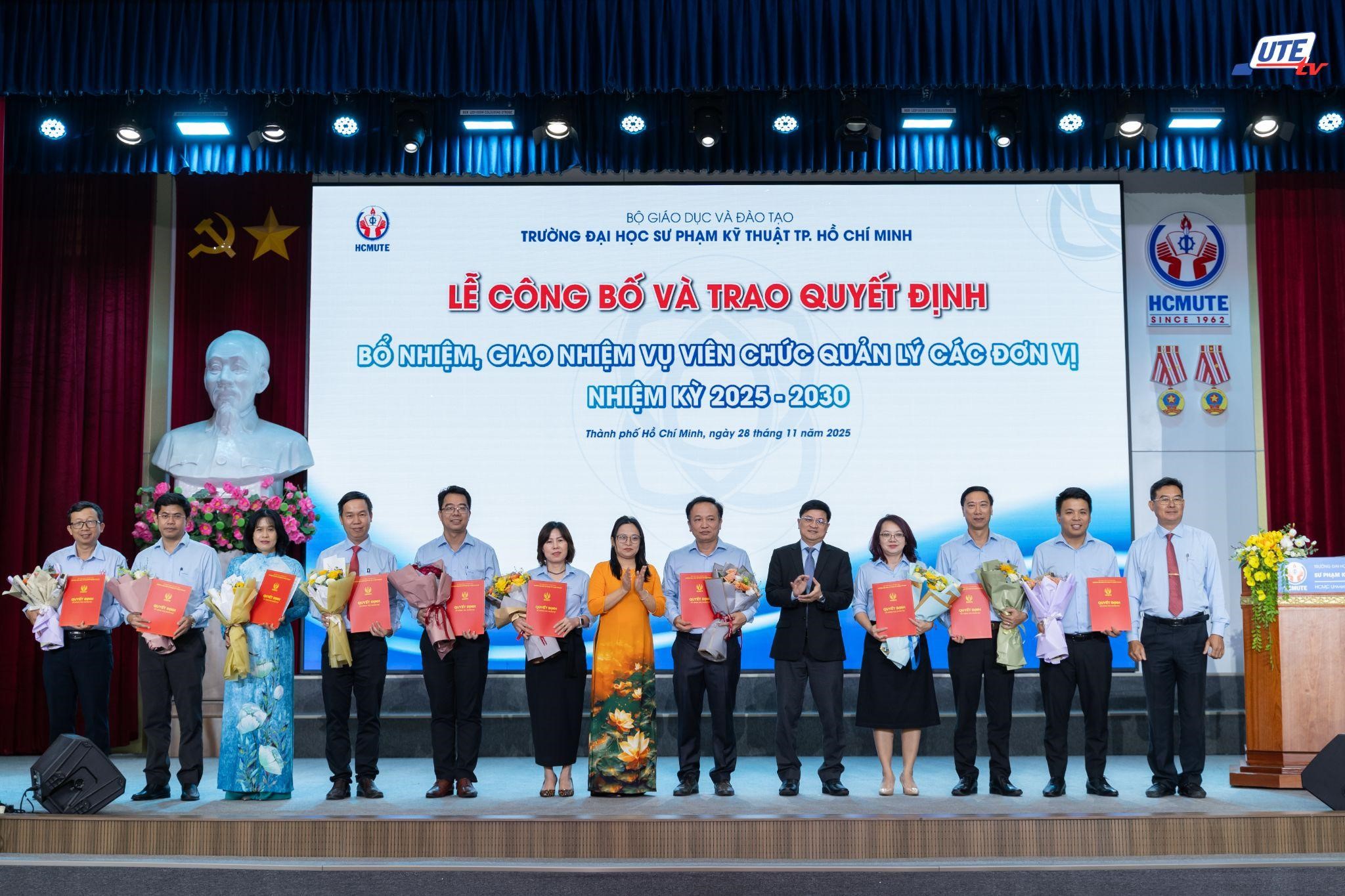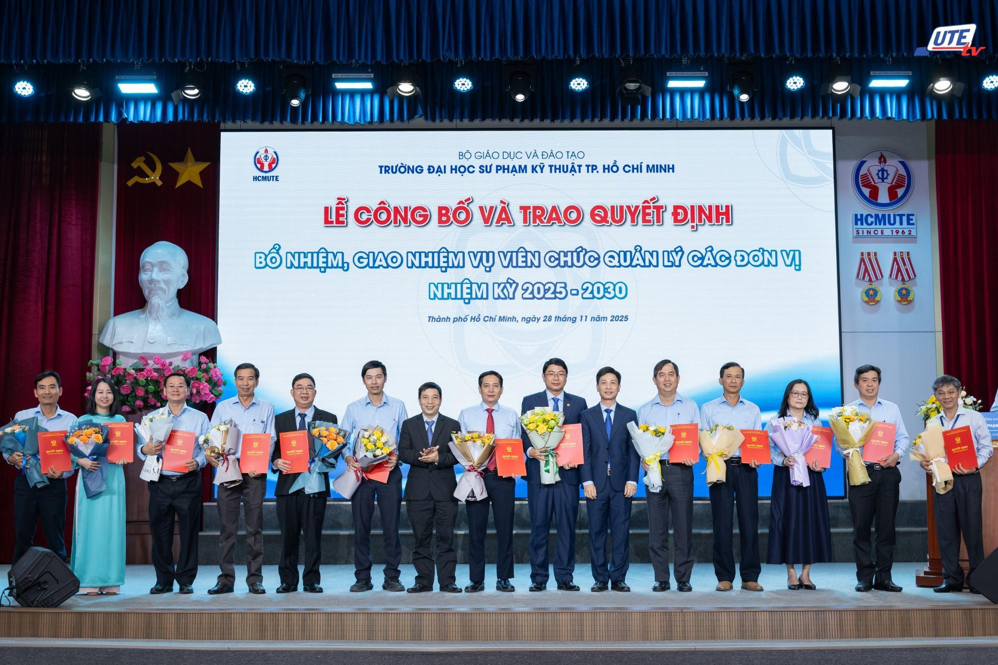 Sáng ngày 28/11/2025, tại Hội trường lớn khu A, Trường Đại học Sư phạm Kỹ thuật TP.HCM (HCMUTE) đã tổ chức Lễ công bố và trao quyết định bổ nhiệm, giao nhiệm vụ viên chức quản lý các đơn vị nhiệm kỳ 2025-2030.