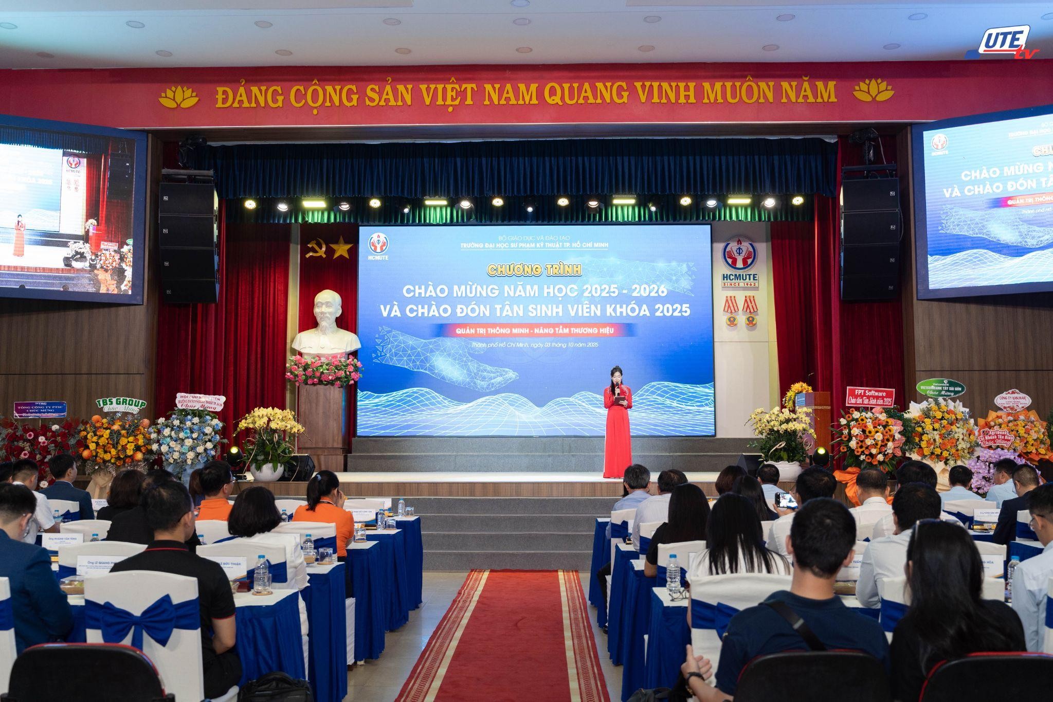 Chiều ngày 03/10/2025, Trường Đại học Sư phạm Kỹ thuật TP.HCM (HCMUTE) đã tổ chức chương trình Chào mừng năm học 2025-2026 với chủ đề “Quản trị thông minh – Nâng tầm thương hiệu” và Chào đón Tân sinh viên khóa 2025. Chương trình còn mang ý nghĩa đặc biệt khi chào đón các em tân sinh viên nhân dịp kỷ niệm 63 năm ngày thành lập Trường (05/10/1962 - 05/10/2025).