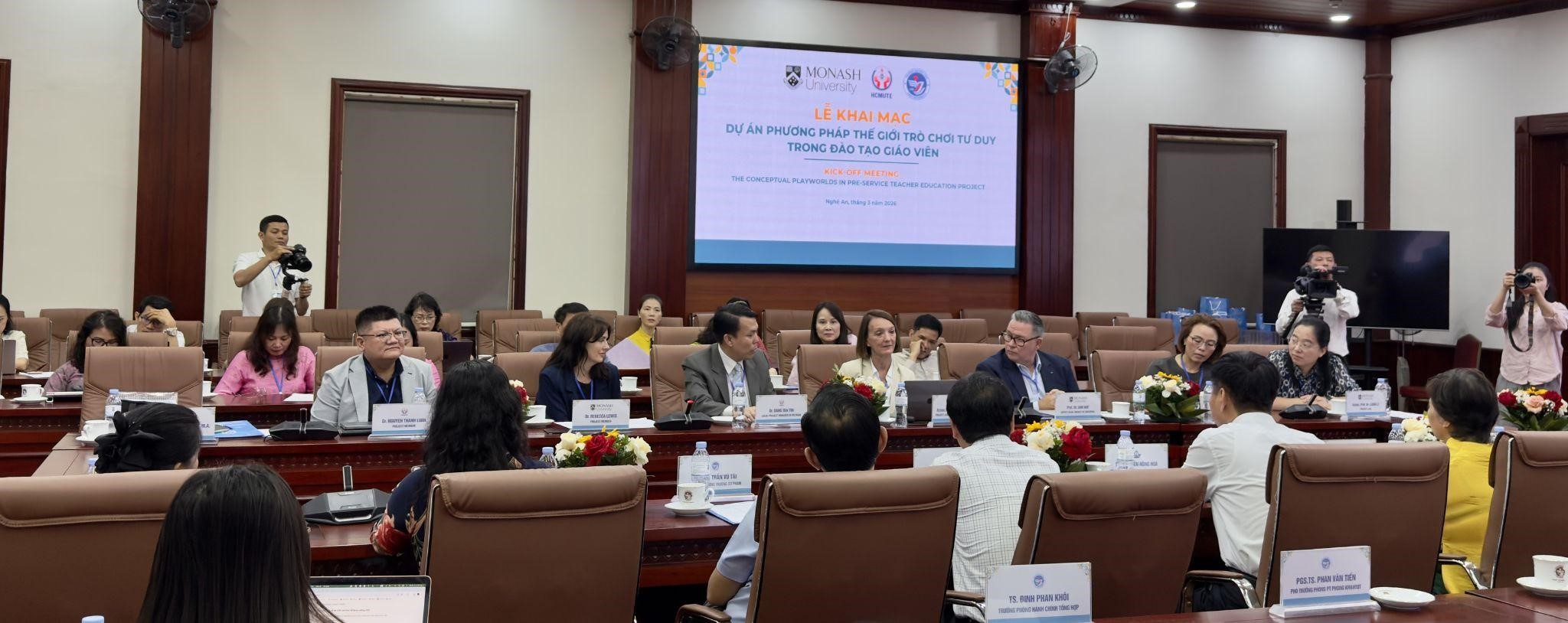 Nhằm hiện thực hóa biên bản ghi nhớ hợp tác (MOU) giữa Trường Đại học Công nghệ Kỹ thuật TP.HCM (HCM-UTE), tiền thân là Trường Đại học Sư phạm Kỹ thuật TP.HCM, và Đại học Monash (Úc) ký ngày 27/11/2025, dự án “Playful Research and Education for Sustainable Education and Teaching (PRESET)” đã chính thức được triển khai tại Việt Nam thông qua chuỗi hoạt động khai mạc diễn ra tại Trường Đại học Sư phạm – Đại học Huế (21–23/3/2026) và Đại học Vinh (25–27/3/2026).
