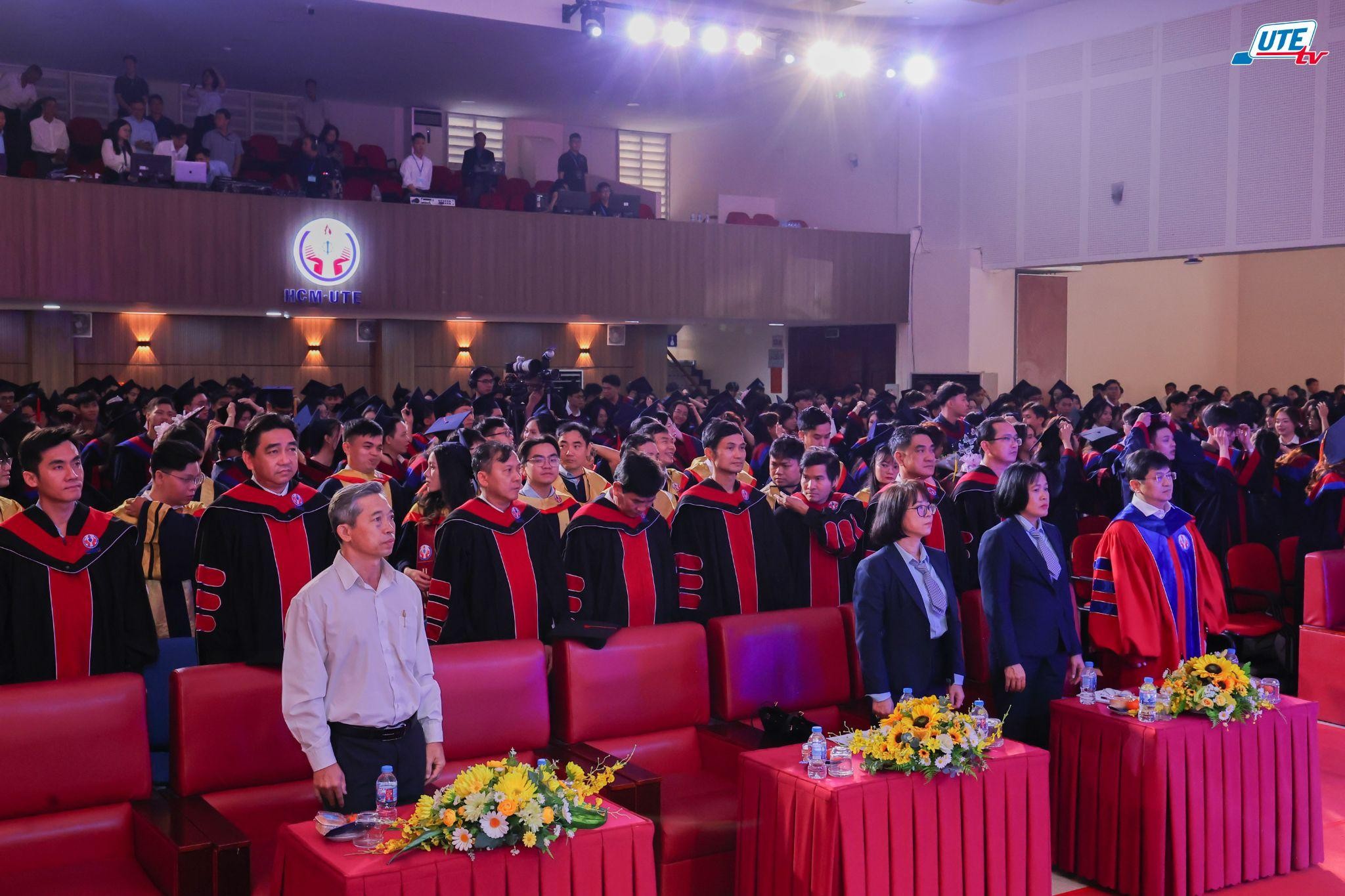 Trong đợt tốt nghiệp này, Trường Đại học Công nghệ Kỹ thuật TP.HCM có 08 tân Tiến sĩ, 44 tân Thạc sĩ và 4.507 tân Kiến trúc sư, Kỹ sư, Cử nhân hệ chính quy. Trong đó, có 215 sinh viên tốt nghiệp loại Xuất sắc (chiếm tỷ lệ 4,77%), 1.366 sinh viên tốt nghiệp loại Giỏi (chiếm tỷ lệ 30,31%), 2.900 sinh viên tốt nghiệp loại Khá (chiếm tỷ lệ 64,34%) và 26 sinh viên tốt nghiệp loại Trung bình (chiếm tỷ lệ 0,58%). Như vậy, tổng số sinh viên tốt nghiệp từ loại Khá trở lên chiếm tỷ lệ 99,42%. Đây không chỉ là con số đáng tự hào mà còn là minh chứng cho sự cải tiến liên tục về chất lượng đào tạo của Nhà trường cùng sự quyết tâm học tập của người học.