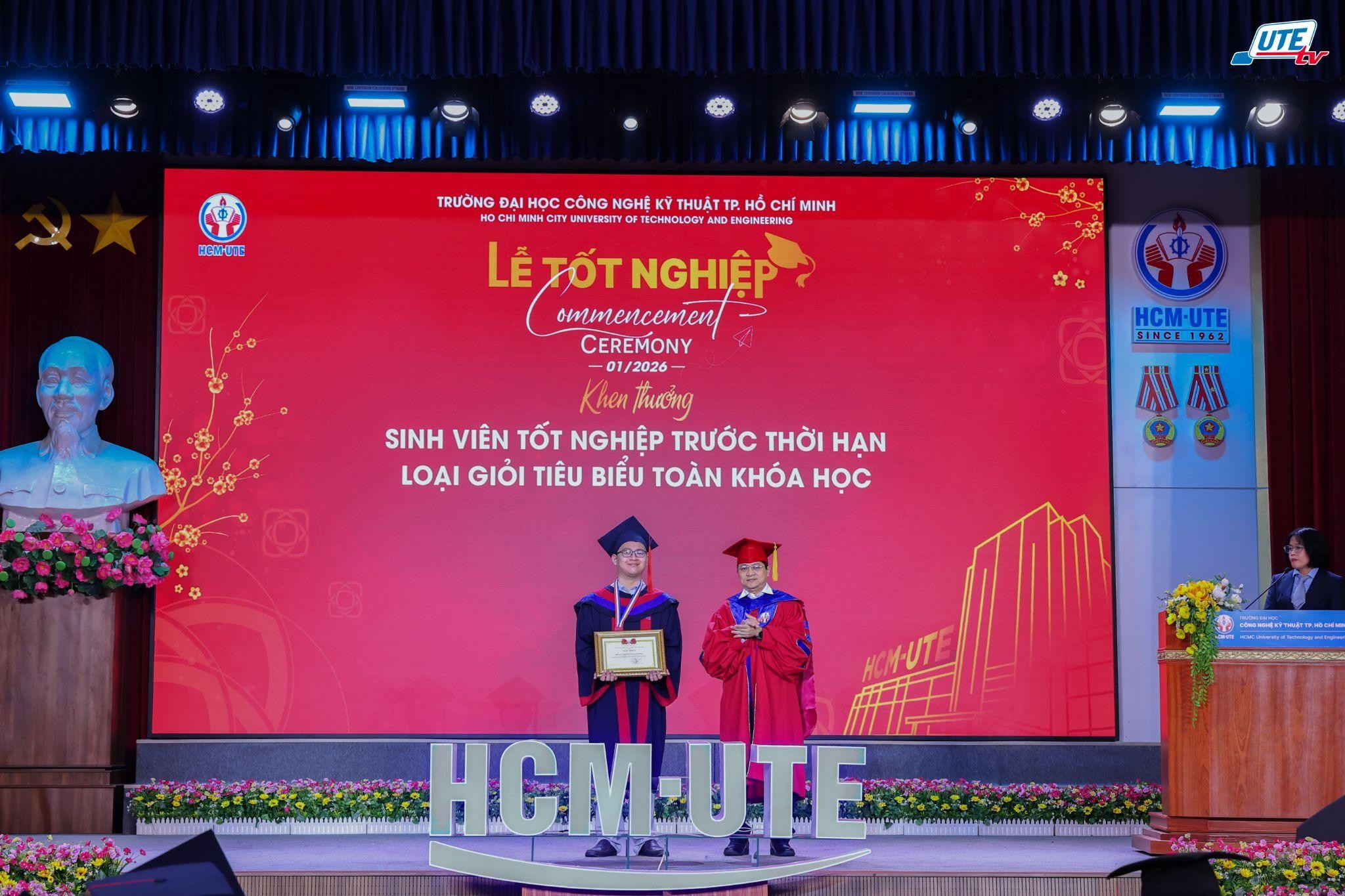 Sáng nay 21/01/2026, Trường Đại học Công nghệ Kỹ thuật TP.HCM (HCM-UTE), tiền thân là Trường Đại học Sư phạm Kỹ thuật TP.HCM đã tổ chức Lễ tốt nghiệp tháng 01 năm 2026 dành cho nghiên cứu sinh, học viên cao học, sinh viên đại học hệ chính quy và sinh viên đại học hệ vừa làm vừa học (đợt tốt nghiệp tháng 07, 09, 11 năm 2025). Chương trình Lễ tốt nghiệp tháng 01 năm 2026 diễn ra từ ngày 21-25/01/2026, gồm 09 buổi lễ.