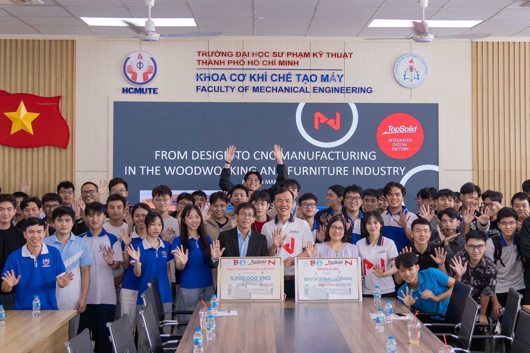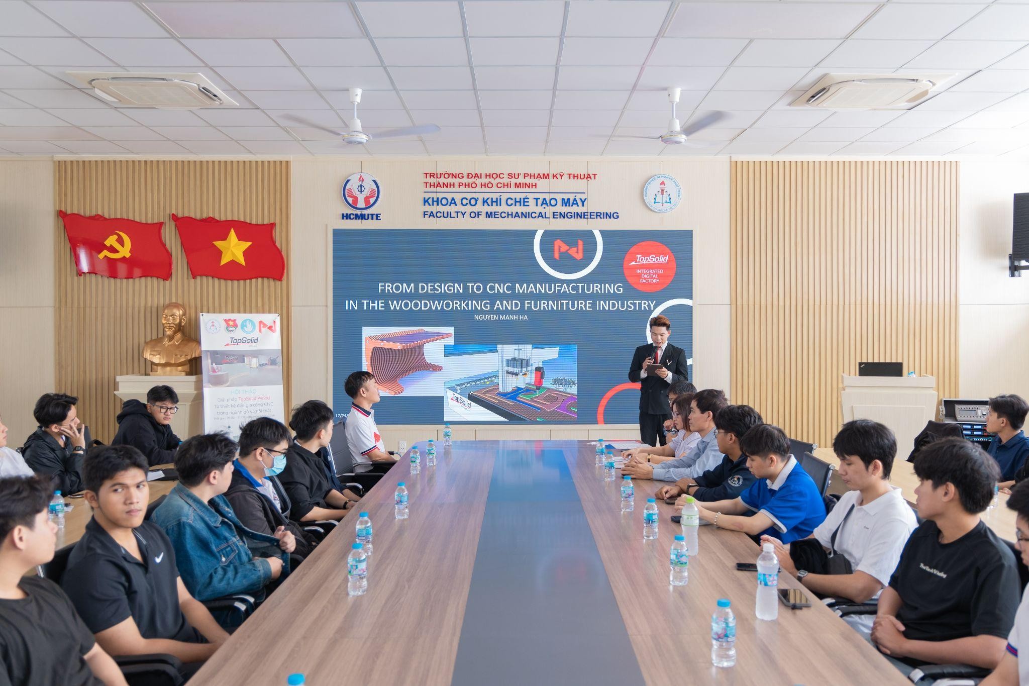 Sáng ngày 17/04/2026, tại phòng E0-204, Khoa Cơ khí Chế tạo máy – Trường Đại học Công nghệ Kỹ thuật TP.HCM (HCM-UTE), tiền thân là Trường Đại học Sư phạm Kỹ thuật TP.HCM đã phối hợp cùng công ty TopSolid và công ty TNHH Giải pháp Kỹ thuật Hà An tổ chức hội thảo chuyên đề “Từ thiết kế đến gia công CNC trong ngành gỗ và nội thất với giải pháp TopSolid’Wood”.