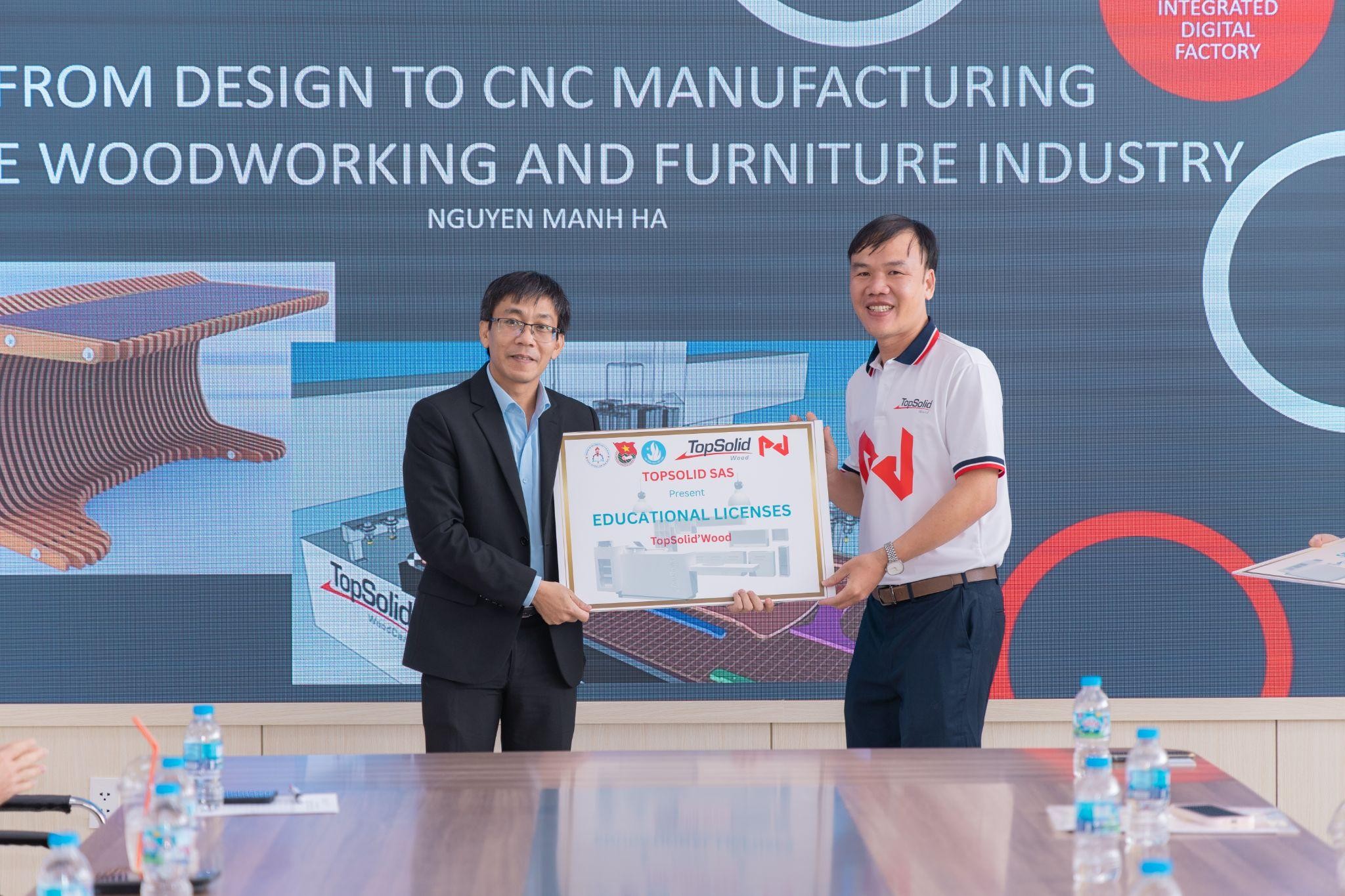 Đại diện công ty TopSolid trao tặng license giáo dục phần mềm TopSolid’Wood cho HCM-UTE