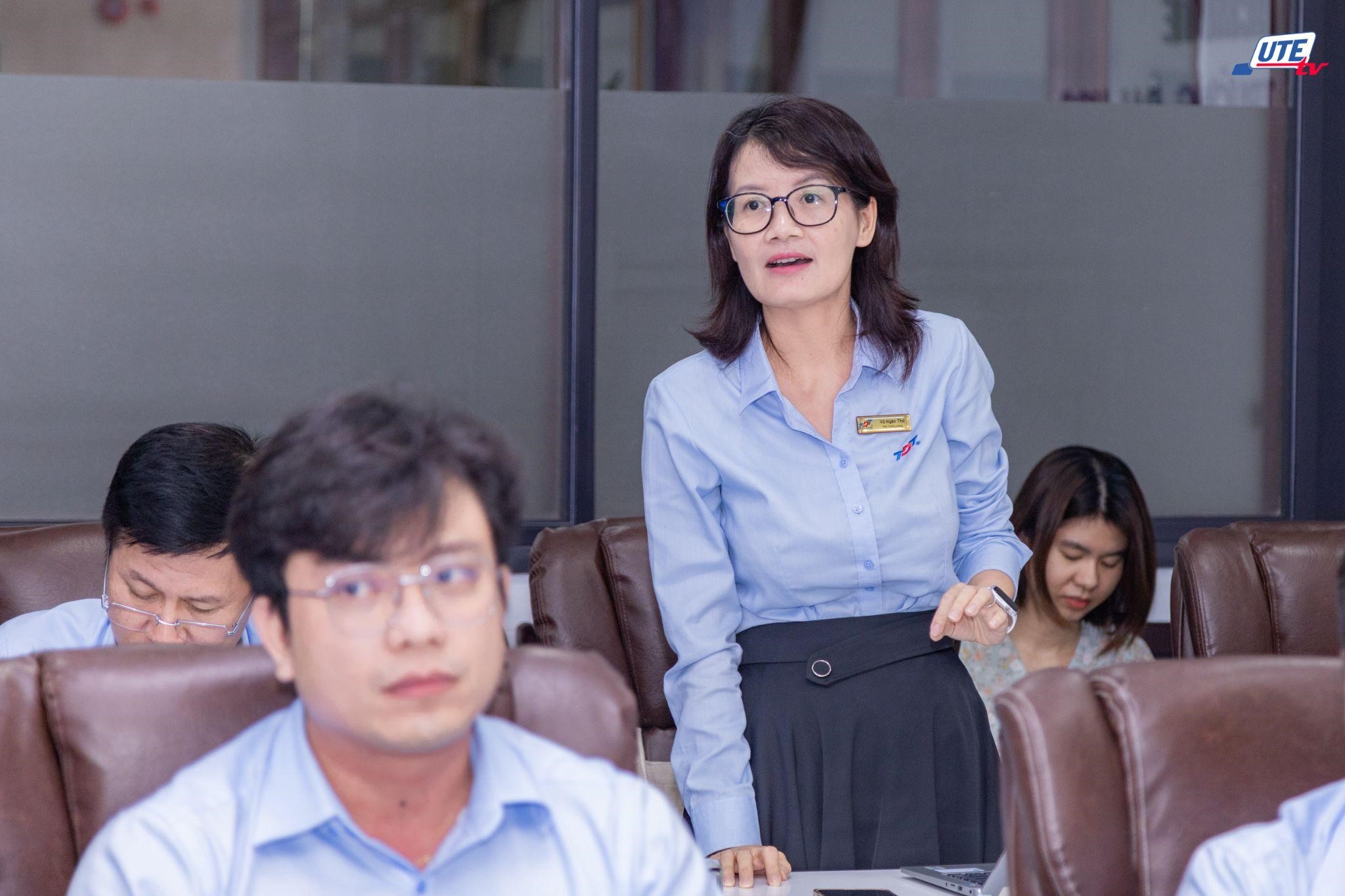 Đại diện HCMUTE đã trình bày chi tiết về kinh nghiệm triển khai hệ thống Dạy học số và công tác bồi dưỡng giảng viên trong môi trường trực tuyến. Các nội dung được đoàn TDTU đặc biệt quan tâm gồm: phương thức xây dựng học liệu số chuẩn hóa; cơ chế kiểm định; mô hình quản trị dữ liệu học tập tập trung và chính sách hỗ trợ người học trong môi trường học trực tuyến.