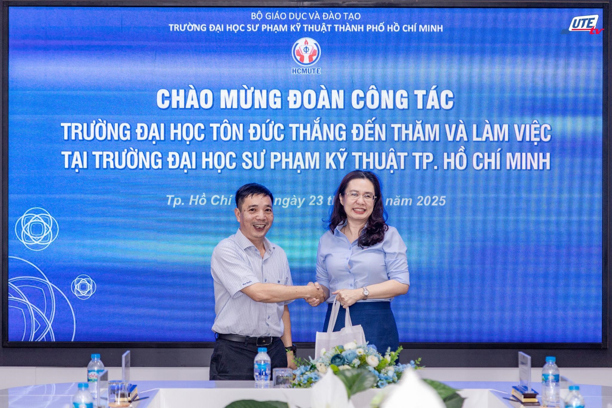 Chiều ngày 23/10/2025, tại Phòng họp I – Trường Đại học Sư phạm Kỹ thuật TP. Hồ Chí Minh (HCMUTE) đã diễn ra buổi làm việc giữa đại diện Trường Đại học Tôn Đức Thắng (TDTU) và lãnh đạo HCMUTE nhằm trao đổi, chia sẻ kinh nghiệm trong công tác đào tạo từ xa và vận hành hệ thống đào tạo trực tuyến.  Trước đó, vào ngày 29/4/2025, HCMUTE và TDTU đã ký kết Biên bản ghi nhớ hợp tác (MoU), tạo nền tảng quan trọng cho việc tăng cường các hoạt động trao đổi chuyên môn giữa hai bên.