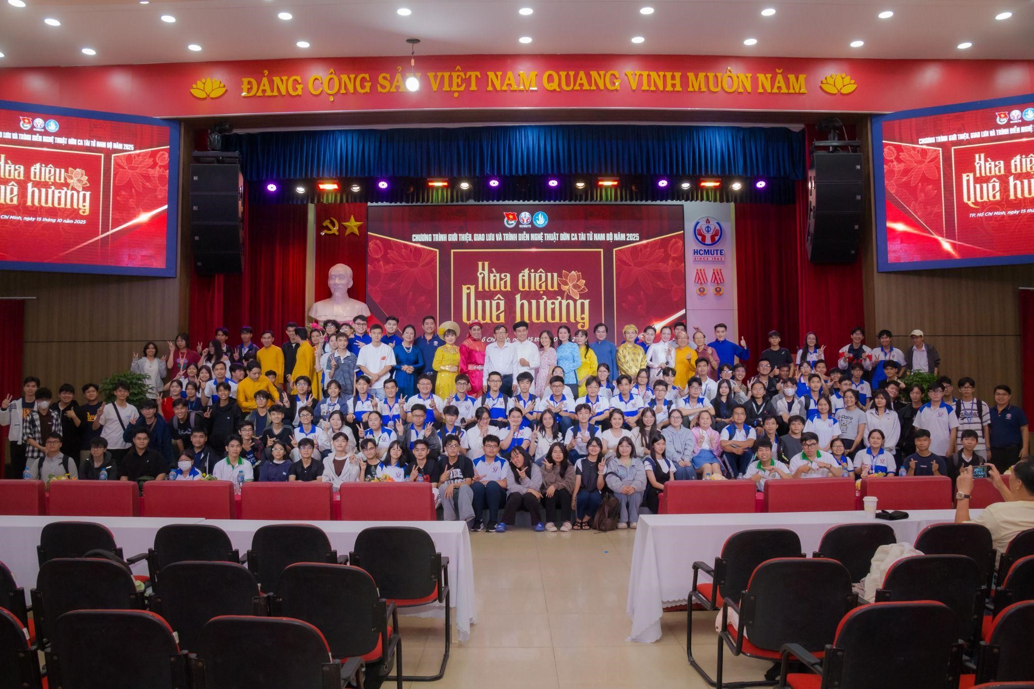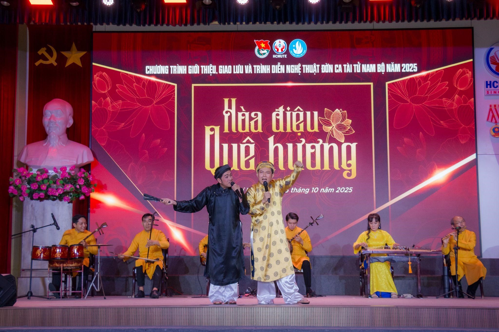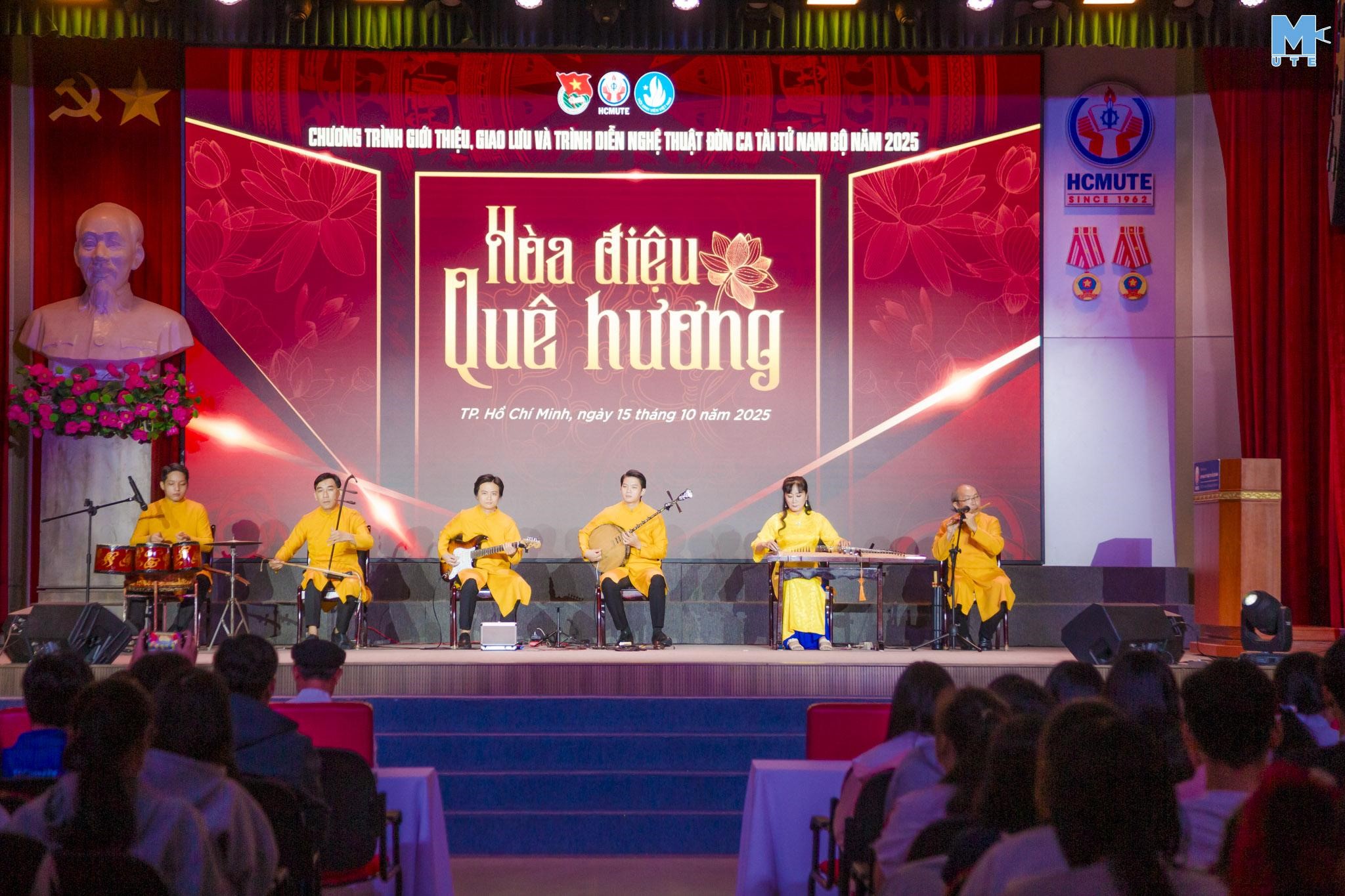 Tối ngày 15/10/2025, Đoàn Thanh niên – Hội Sinh viên Trường Đại học Sư phạm Kỹ thuật TP.HCM (HCMUTE) phối hợp cùng Ban Đờn ca tài tử Cội Xưa đã tổ chức chương trình giao lưu nghệ thuật Đờn ca tài tử với chủ đề “Hòa điệu quê hương” tại Hội trường lớn của Nhà trường.