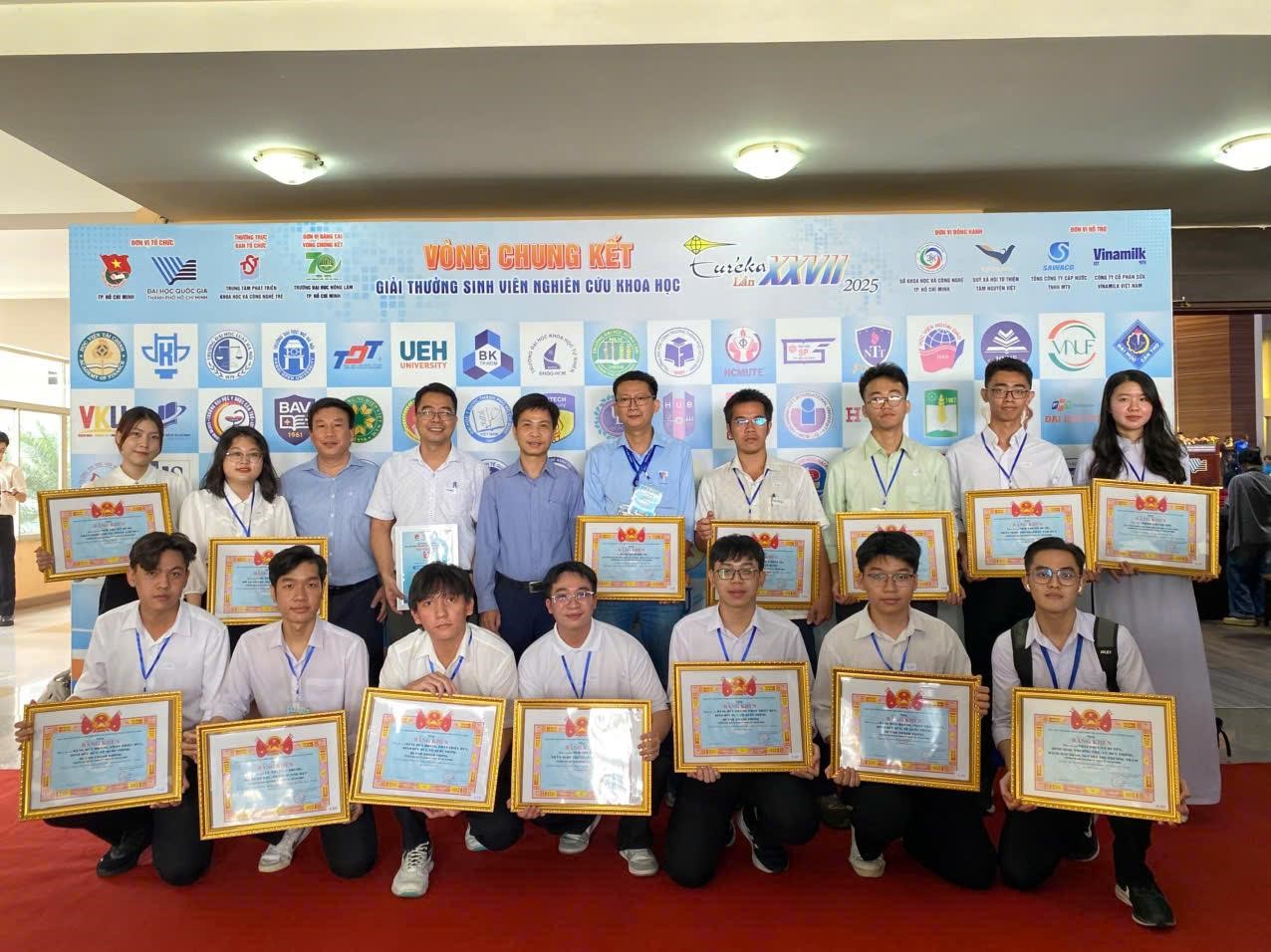 Ngày 07/12/2025, Lễ tổng kết và trao Giải thưởng Sinh viên nghiên cứu khoa học Euréka lần XXVII năm 2025 đã diễn ra tại Đại học Quốc gia TP.HCM. Trường Đại học Sư phạm Kỹ thuật TP.HCM (HCMUTE) đã đạt 01 giải Nhì, 01 giải Ba và 03 giải Khuyến khích, tiếp tục khẳng định năng lực nghiên cứu và tinh thần sáng tạo của sinh viên Nhà trường.