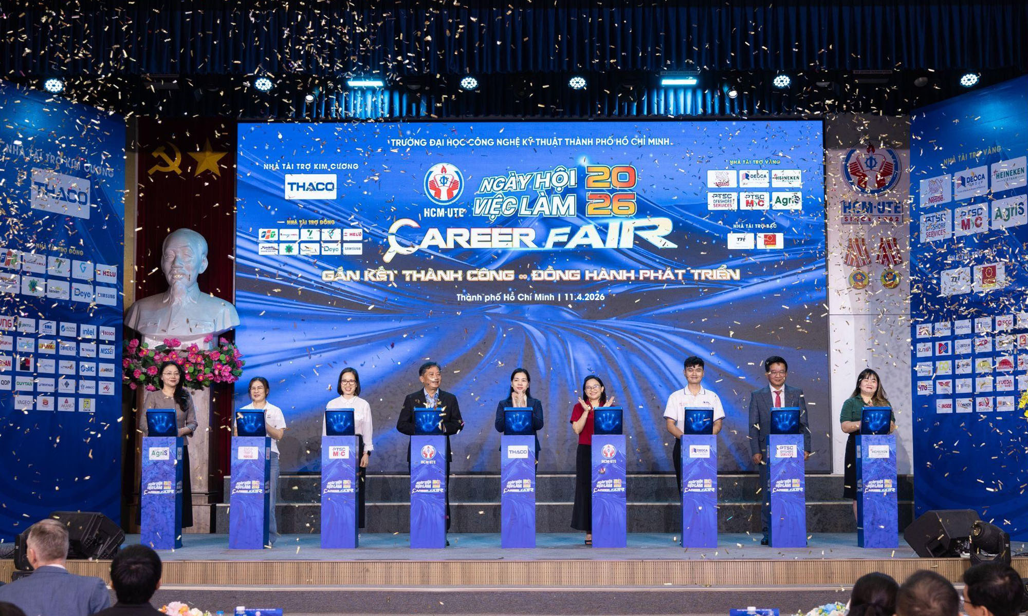 Sáng ngày 11/04/2026, tại Hội trường lớn khu A, Trường Đại học Công nghệ Kỹ thuật TP.HCM (HCM-UTE, tiền thân là Trường Đại học Sư phạm Kỹ thuật TP.HCM), đã tổ chức Lễ khai mạc Ngày hội Giao lưu – Tuyển dụng – Việc làm năm 2026.